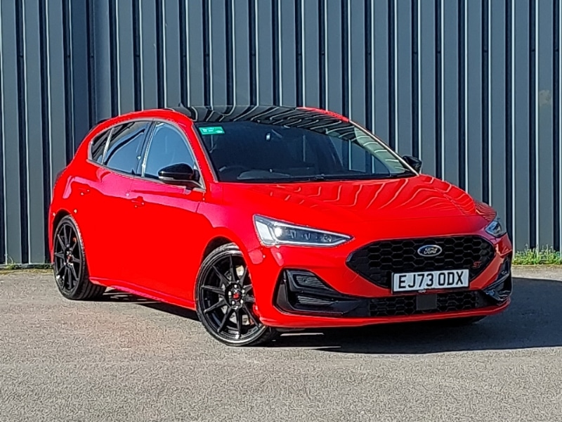 York1 Previous Owner, Ford SYNC4 Nav with 13.2'' touchscreen, DAB, Emergency Assistance, Apple Carplay & Android Auto, B&O Premium Audio with 10 speakers, FordPass Connect, Lane keeping system lane keeping alert and lane keeping aid, Launch control, 12.3" Digital instrument cluster, 2 USB ports, Heated rear window, Front variable intermittent wipers with electric wash, Electrically operated front and rear windows with one touch opening and closing, Service interval indicator, Dynamic matrix LED headlamps including Glare free lighting, Trip computer, Privacy glass, Rev counter, Rear side wing doors, Height adjustable front headrests, Power 6way driver seat adjust, with power lumbar adjust, Power 6way passenger seat adjust, with power lumbar adjust, Reach + rake adjustable steering column, Winter pack Focus, EDL traction control, Front inertia reel height adjustable seatbelts with pretensioners, Passenger airbag deactivate switch, Pre collision assist with autonomous emergency braking and pedestrian/cyclist detection, Red brake calipers, Three rear inertia reel lap/diagonal seatbelts, Keyless entry and keyless start, Remote central locking & engine immobiliser, 19" 5x2 spoke magnetite matte finish alloy wheels with mini spare wheel