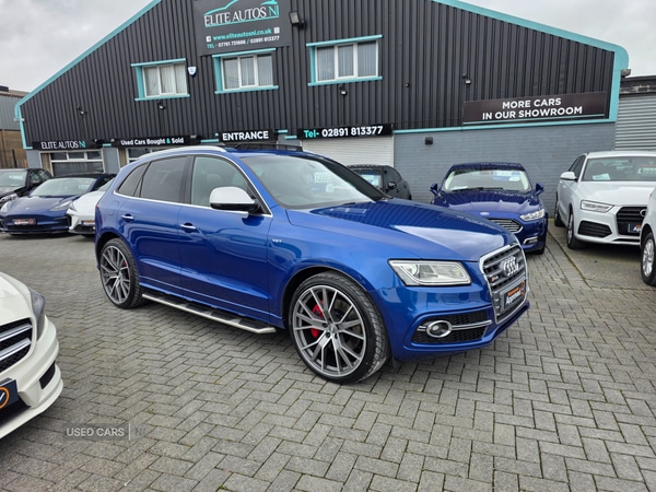 Newtownards322bhp diesel and pan roof 2016 Audi sq5 quattro 3.0 diesel 110,000 miles with strong service history 8 speed automatic gearbox with paddle shift Hpi clear6 months warranty Two keys Finished in sepang blue with black heated leather and pan roof with 322bhp and a zero to 60mph time of 5 seconds climate control isofixcruise control dab radio with bang and olufsen Bluetooth Sat nav xenon headlights reverse camera New 22 inch wheel and tyre package optional £1295£13,995What's app walk round video available Elite Autos NI 3 glenford road Newtownards Bt23 4au Tel. 0756895692002891 813377 Finance available* no final payment Part exchange welcome debit card facilities *All finance subject to status