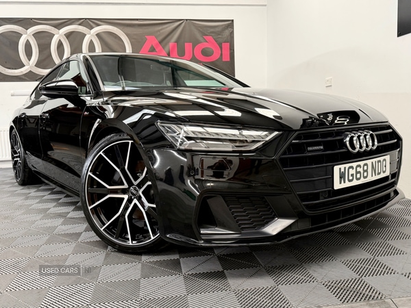 BallynahinchDEC 2018 (2019 MODEL) AUDI A7 3.0 V6 45TDI S LINE AUTOMATIC BLACK EDITION STYLING VIRTUAL COCKPIT REVERSE CAMERA Stunning Example Of This Sought After Facelift Model In Mythos Black Metallic With Black Half Leather & Alcantara Centres Boasting A Massive Spec List To Include :Virtual CockpitTech Pack Touch(wide screen)Reverse CameraSport Multi Function Steering WheelInterior Light PackageMulti ColouredAudi WIFI/ConnectSat NavAudi Comms Bluetooth With Voice CommandAppleCar Play Bluetooth Media With Music InterfaceAppleCar PlayAudi Drive SelectAudi Pre Sense City Emergency Braking SystemCruise ControlDAB Digital RadioSmart Phone InterfaceAdvanced Key Push Button StartComfort PackElectric Lumbar SupportElectrically Adjustable SeatsSafety Pack Isofix Cubed Aluminium Dash InlayDriver Info SystemAutomatic Headlight ActivationXenon HeadlightsDaytime RunningElectric Folding/Heated Door MirrorsAuto Rain Sensitive WipersWinter PackHeated SeatsHeadlamp Cleansing SystemLCD Parking Sensors Front & RearElectric Opening TailgateRear Sun Protection GlassElectrically Adjustable Rear Spoiler20in Audi Star Design Alloys Or Upgrade To New 21in 2025 Vorsprung Style Alloy Wheels & Tyres For Only £895.00(as illustrated in pics)Only 2xPrevious Professional UK Owners From New,Audi & Specialist Service History ,Totally Excellent Condition Throughout, Any Inspection Welcome,May Part Ex.**** ALL MAKES OF PART EXCHANGE WELCOME *****Every effort has been made to ensure the accuracy of the above vehicles information but errors may occur. Please check with a salesperson.****************************************************************************************Prestige Marques have a dedicated team of finance experts waiting to help with your enquiryWe have relationships with high street lenders and specialist motoring finance houses too, that is how we have helped hundreds of customers secure the best finance deal with hire purchase or PCP options to suit their budget.Feel free to give us a call to discuss a tailored package for you.****************************************************************************************FOR MORE PICS & INFO PLEASE VISIT OUR WEBSITE :WWW.PRESTIGEMARQUES.NET**** VIEWING IS STRICTLY BY APPOINTMENT ONLY ****