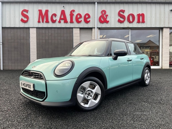 BallymenaThis 2025 MINI Cooper C Classic presents an exceptional opportunity with its remarkably low mileage of just 5500 miles, having been cherished by only one owner. This stylish hatchback is powered by an efficient 1.5L Petrol engine, meeting Euro 6 emissions standards. It comes equipped with modern conveniences such as LED headlights for enhanced visibility, a heated steering wheel for comfort on colder days, and an automatic air conditioning system to maintain the perfect cabin temperature. The inclusion of a rear view camera further aids in parking and manoeuvring. The performance of this MINI Cooper C Classic is noteworthy, boasting an impressive acceleration of 0 to 62mph in just 8.0 seconds, demonstrating its spirited driving dynamics. This quick acceleration, combined with its low mileage and single owner history, sets it apart from other vehicles of its kind. The Classic trim level offers a well rounded package of features and style, making it a desirable choice for those seeking a premium compact car experience