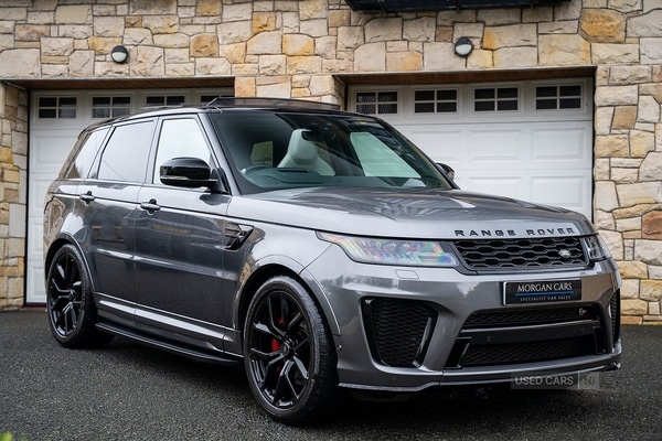 Warrenpoint2 Previous Owners, Morgan Cars are proud to present our Range Rover Sport SVR, Finished in Corris Grey Metallic with Beautiful Ebony Black and Cirrus Perforated Windsor leather interior. The SVR combines a 575bhp supercharged V8 with precisiontuned engineering for thrilling performance and dynamic control.The Specification of this example involves, Carbon Fibre Non Exposed Bonnet, A Full Tilt and Slide Panoramic Glass Roof, Upgraded Meridian 825 Watt HiF Surround Sound System, Complete Carbon Fibre Interior Package, 22" 5 Split Spoke Alloy Wheels In Gloss Black, Centre Console Fridge, Heated Steering Wheel and Heated Front and Rear Seats, Full Reversing Camera, Satellite Navigation, DAB Radio, Bluetooth with Full Audio Streaming, Fixed Side Steps in Gloss Black, Privacy glass, Gloss Red SV painted Callipers, Gloss Black Range rover Lettering, Stainless Steel Exhaust Tips and Much More.Please WhatsApp us on +447436161869 if you prefer a more laidback communication approach.This is a U.K registered car Credit and Debit card facilities available on site Nationwide, International and Global delivery available Huge range of finance options available from prime brokers and Lenders getting you the best deal possible although we try our best to make our advert descriptions as accurate as possible some errors may still occur