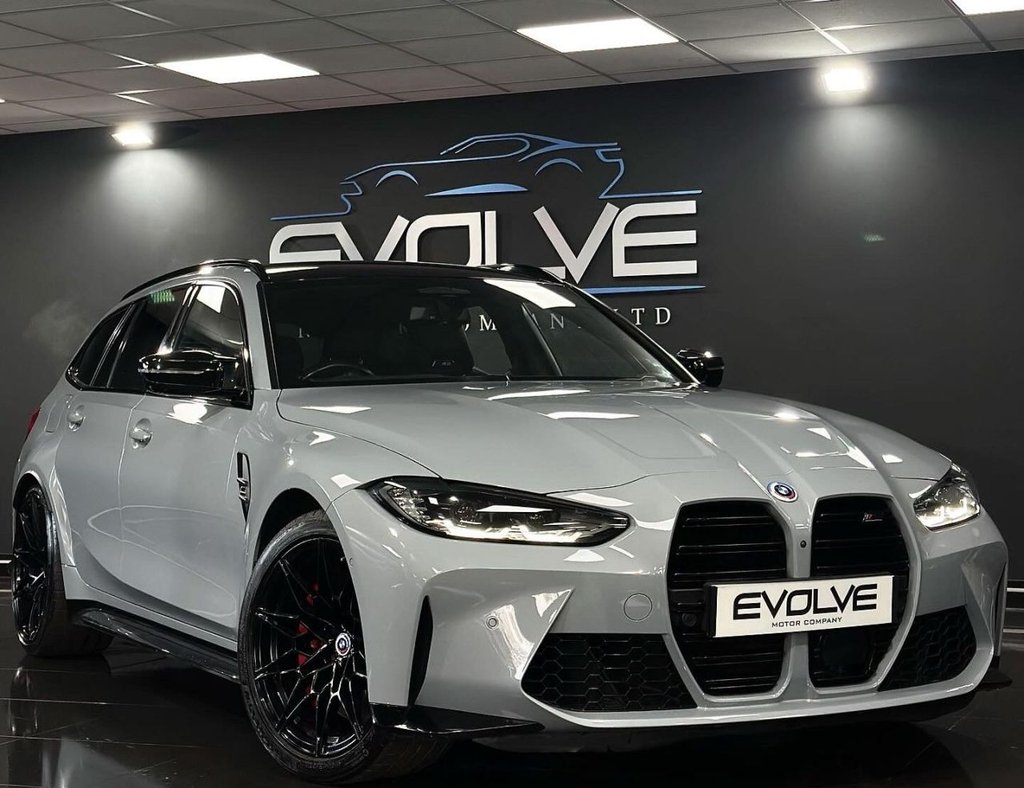 Newport1 Previous Owner, On Offer is a Excellent Example BMW M3 Competition Touring XDrive Finished In Brooklyn Grey with Just 51,800 Miles Specification to Include: Parking Assistant Plus 19"/20" Jet Black 826 M Doublespoke forged alloy wheels with mixed tyres BMW M 50 Year Badges Extended Merino leather upholstery Steering wheel heating Brooklyn Grey Metallic Interior trim, Carbon Fibre M Carbon Interior Inlays, Technology Pack Plus, Reverse Camera, BMW Drive Select With M Mode, Front And Rear Parking Sensors, Full Merino Leather, Heated Electric Memory Front Seats, Harman Kardon sound System, Multifunctional Heated Steering wheel.19in Front 20in Rear Alloy Wheels M Double Spoke 826 Forged Jet Black with Mixed Tyres, Acoustic Glazing, Active Guard Plus, Air Conditioning Automatic with ThreeZone, Airbags, Alarm, Ambient Lighting, Armrests, Automatic StartStop Button, BMW ConnectedDrive Online Services, BMW Emblem on Engine Compartment Lid and Tailgate, BMW Emergency Call, BMW Individual Lights Shadowline, BMW Kidney Frameless with Horizontal Double Grille Slates Black HighGloss with Model Badge, BMW Live Cockpit Professional, BMW TeleServices, Battery in Luggage Compartment, Bumper System, Centre Armrest in Rear Folding with 2 Cup Holders, Centre Lock Switch, Closing System with Central Locking, Condition Based Service, Connected Package Professional, Crash Sensor, Cruise Control including Speed Limiting Function LIM Button, Cupholder, DAB Digital Radio, DSC Dynamic Stability Control Plus, Door Sill Finishers with Aluminium Inserts and Model Inscriptions, Door Sill Strips M Sport Entry Sills, DoubleJointed SpringStrut Front Axle, Driving Assistant, Driving Experience Switch, Electric Bootlid, Electric Memory Seats, Electric Vehicle Immobiliser, Electric Window, Electro Mechanical Parking Brake, Electronic Differential Lock, Enhanced Bluetooth and Wireless Charging, Extended Storage, Exterior Mirror Caps and Rear Spoiler in HighGloss Black, Exterior Trim Extended High Gloss Shadowline, Exterior Trim HighGloss Shadowline, Floor Mats Velour, Folding Wing Mirrors with AutoDimming, FollowMeHome Function, Front Lumbar Support, Front and Rear Apron Plastic in Body Colour, Galvanic Controls, Glove Compartment Illuminated, Harman Kardon Surround Audio Sound System, HeadUp Display, Headlight BeamThrow Control, Headlining Anthracite, Heat Protection Sun Protection Glazing, Heated Seats Front, HighBeam Assistant, Illuminated BowType Door Handles in Body Colour Drivers Side with Door Lock, Interior Trim Black High Gloss, Interior Trim Carbon Fibre, LED Rear Lights, Language Version English, Lower Edges of Bumpers Side Sills Edge Binding of Diffuser and Diffuser in Black HighGloss, Luggage Compartment Lights, M Adaptive Suspension, M Compound Brakes with Red High Gloss, M Drive, M Drive Professional, M Roof Rails HighGloss Black, M Seat Belts, M Sport Differential, M Sport Seats, M Steering Wheel, Model Badges in Black, Model Logo Rear Right M3 Competition Inscription, Multifunction for Steering Wheel, Oil Sensor For Level and G