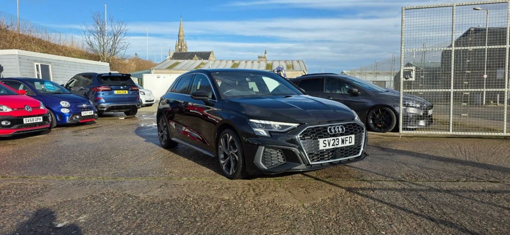 Fraserburgh0 Previous Owners, LOVELY EXAMPLE THIS AUDI A3 SPORTBACK SLINE 1.5 TFSI GREAT SPEC AUTO .12v Socket and Storage Compartment in Front Centre Console, 18in Alloy Wheels 5Arm Dynamic Design, 2 USBC Ports with Charge and Data Functions, 3Spoke Leather MultiFunction Steering Wheel with GearShift Paddles, 4Way Lumbar Support for Front Seats, 6 Passive Loudspeakers, Airbags Driver and Front Passenger with Passenger Airbag Deactivation, Aluminium Interior Elements, Aluminium Window Trims, Anti Theft Locking Wheel Bolts, AntiTheft Alarm, Audi Connect Navigation and Infotainment Services Plus (3 Year Subscription From New), Audi Drive Select, Audi PreSense Front with Pedestrian and Cyclist Recognition, Audi Smartphone Interface, Audi Virtual Cockpit, Auto Dimming and Frameless Rear View Mirror, Bluetooth Interface, Body Coloured Door Mirrors, Camera Based Traffic Sign Recognition, Cloth Headlining in Black, Collision Avoidance Assistant, Cruise Control, DAB Digital Radio, DualZone Electronic Climate Control, ESC Electronic Stabilisation Control inc ABS ASR and EDL, Electric Windows Front, Electromechanical Power Steering, Electronically Operated Child Locks, Emergency Call ECall, Exterior Mirrors Electrically Adjustable Heated and Folding Automatically Dimming on Both Sides with BuiltIn LED Side Indicators Including Automatic KerbSide Function for the PassengerSide, First Aid Kit and Warning Triangle and 2 Safety Vests, Front Side Airbags with Head Airbags and Interaction Airbag, Front Sports Seats, Front and Rear Centre Armrest in Leather, Front and Rear Floor Mats, Hill Hold Assist, ISize and Top Tether Child Seat Mounting for the Outer Rear Seats, Illuminated Door Sill Trims with Aluminium Inserts and S Logo, Inlays Dark Spectrum Aluminium, LED Headlights with LED Rear Lights and Dynamic Rear Indicators, LED Interior Light Package, Lane Departure Warning, Light and Rain Sensors, Luggage Compartment Floor Covering, MMI Navigation Plus with High Resolution 10.1in Touchscreen Colour Display, Manual Boot Compartment Lid, Pedals in Stainless Steel and Footrest in Black, Privacy Glass, Rear Parking Sensors, Remote Central Locking, S Line Bumpers, S Line Styling, S Roof Spoiler, Seat Belt Monitoring, SplitFolding Rear Seat Can be SplitFolded 4060 or Folded Fully, Sport Suspension, Tool Kit, Tyre Pressure Loss Indicator, Tyre Repair Kit, Voice Control System with Natural Language Interaction, Windscreen with Acoustic Glazing