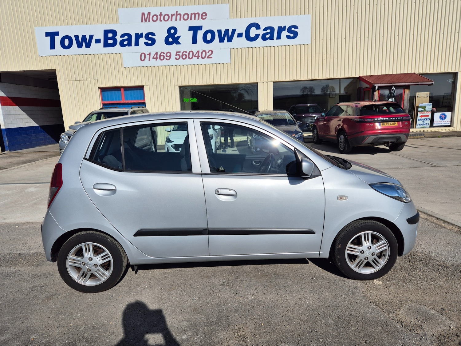 GrimsbyInsurance Group 11, 1 Previous Owner, Partial Service History, The vehicle is in good condition inside and out. The running costs of the I10 are second to none with 55 MPG combined, low insurance and £20 a year road tax. This vehicle has only covered 22436 miles from new and has just been serviced. This is a 5 door Style model which comes with air conditioning. To see more of how our electronic braked aframes work please click on our video below the pictures of this car here on ebay. The vehicle has been converted by ourselves with our unique electronically braked Aframe. As you can see from the pictures, the vehicle is left looking very neat and tidy when the car is in road mode. Utilising the latest electronic technology, TowBars 2 TowCars Ltd, offers you a superbly strong but lightweight system that is both attractive and incredibly easy to fit or remove, and unlike other systems your car's modern appearance is maintained when you're driving your car. Our unique electronic braking system gives you far more control over the braking of your towcar, and it meets all European towing rules. Our Aframe is a 100% legal AFrame towing system. The sturdy but lightweight system dispenses with 50 year old caravan technology in the heavy sliding tow hitch, allowing the towcar to be reversed easily. The vehicle has been professionally converted by our skilled team at our base in North Lincolnshire. Ours is the only system that allows the tow vehicle to brake proportionally the same as you are braking in your motorhome, giving you full control over the towcar. By having a proportional braking system we can issue a Certificate of Braking Efficiency to prove the motorhome and towcar complies with EU regulations comforting to know when towing in mainland Europe. In normal use, the system fits to your motorhome in under five minutes. There are no untidy cables to attach to the car's brake pedal and nothing to remember to turn on or off. The vehicle is left looking like a normal car without having large protruding bars or permanently fitted towing brackets. Better still, when not in use the system folds up and can be stored in the boot of the tow car. How the system works: The two eye bolts are screwed in by hand to the towing points (hand tight).The AFrame is attached very simply into the two pins and secured with 2 linch pins. The AFrame is attached to the rear of the motorhome using a standard tow hitch. A special 13 pin lead is attached with a halftwist action on both your motorhome and the car. This controls all the rear lights of the towcar (a legal requirement).The unique interconnecting lead also allows a trickle charge from the motorhome to the towcar's battery when the motorhome is running. This ensures you never get a flat battery when you reach your destination. Upon attaching the 13pin lead, the towcar automatically ''sets itself up'' into tow mode, and when the lead is removed after your journey the car reverts automatically to standard roadgoing mode. A breakaway cable is attached using clips. This whole process takes less than five minutes by almost anyone, as the heaviest part (the AFrame) weighs only 11Kg compared to most other systems at over 20Kg.The rear towing sign is attached in the rear window of the vehicle. The (supplied) spare number plate is attached to the rear of the tow car. After attaching the towcar, just put the vehicle into Neutral, turn the ignition key into Position 1 to release the steering lock and release the hand brake. It is as easy as that, well under 5 minutes to fit.