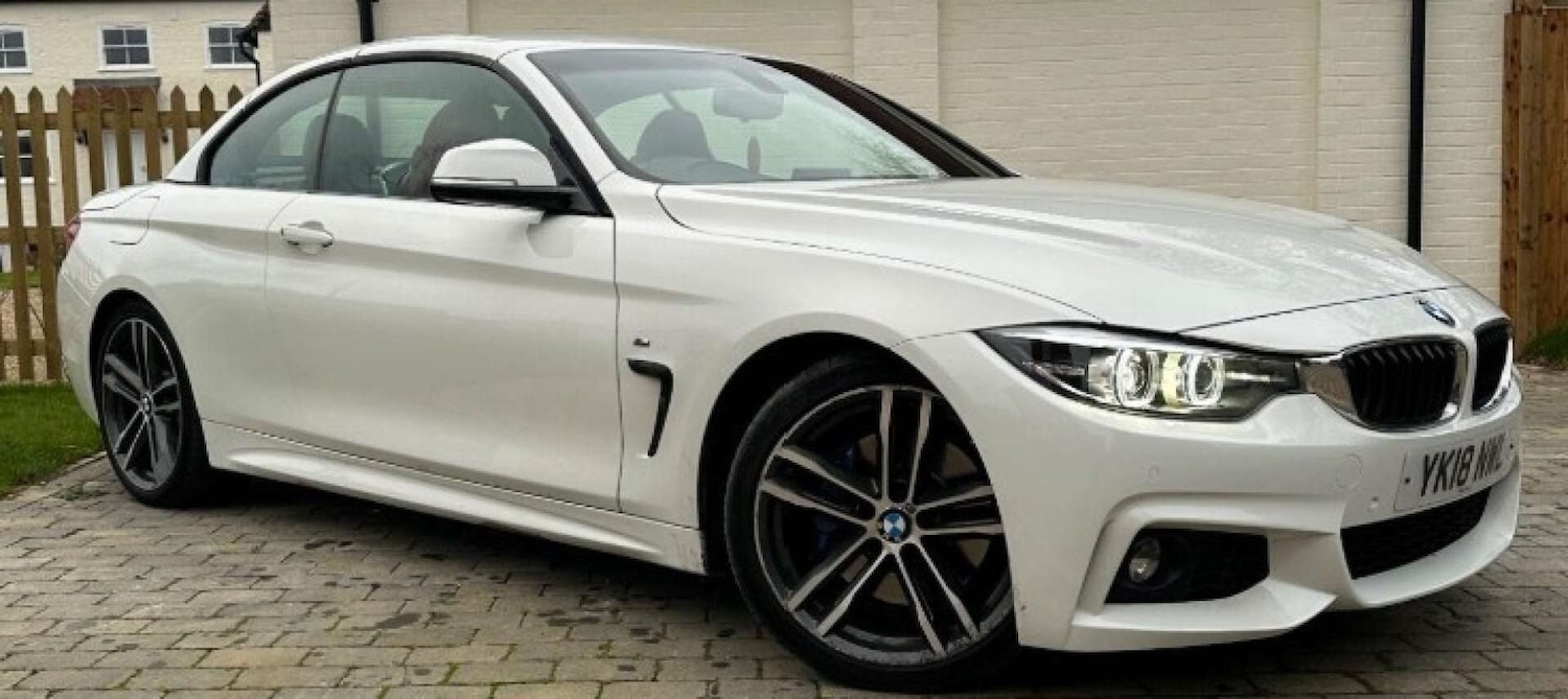 Fareham1 Previous Owner, 2018 BMW 420i M Sport Convertible 60,900 Miles A wellspecified BMW 4 Series M Sport Convertible finished in white with the 2.0 petrol engine and manual gearbox. This example benefits from the desirable M Sport Plus Package along with additional comfort and driver assistance options, making it a strong allrounder with both performance and premium features. The car has been well maintained from new, originally supplied with a BMW service plan and supported by further servicing. The interior is in excellent condition and the retractable hardtop offers yearround usability. This vehicle has covered 60,900 miles, comes with 2 keys, and benefits from 6 recorded services, with the last service completed in July 2025 at 45,463 miles. FEATURES BMW Professional Navigation (Media Package) Harman Kardon Premium Sound System Comfort Access with Smart Opener Heated Front Seats Warm Air Collar Convertible Comfort Package M Sport Plus Package M Sport Braking System 19in M Double Spoke Alloy Wheels LED Headlights High Beam Assist Front & Rear Parking Sensors Cruise Control with Brake Function Dual Zone Climate Control Electric Folding Mirrors with AntiDazzle Enhanced Bluetooth with Wireless Charging Wind Deflector Real Time Traffic Information Ambient Interior Lighting M Sport Suspension Why Buy From Liberty Green? Every Liberty Green car is handselected, HPI clear, and prepared to a high standard for total peace of mind. Each vehicle undergoes a detailed inspection and comes with a minimum threemonth warranty, extendable for up to three years. We also offer nationwide delivery, competitive finance, and a straightforward, customerfocused buying experience.