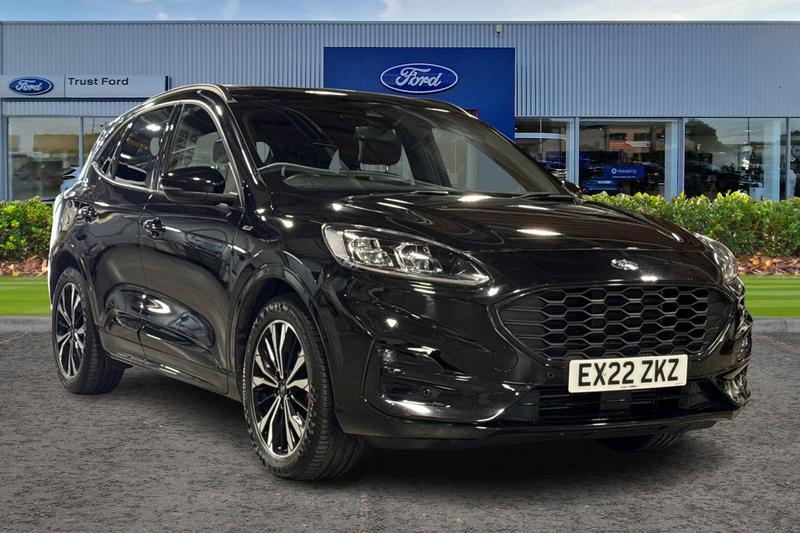 Insurance Group 14, 12.3 digital colour instrument cluster, Ford easy fuel, Ford SYNC 3 with 8 TFT LCD touchscreen, App Link, andriod auto/apple carPlay, emergency assistance and navigation with Ford pass connect, Front and rear parking sensors, Hands free power tailgate, Lane keeping aid with lane departure warning, Power assist steering, Rear view camera, Selectable drive modes, Service interval indicator, Auto headlamps with high and low beam, Black roof rails, Day/night rear view mirror, Front LED fog lamps, Large rear spoiler, LED daytime running lights, LED rear lights, Power folding heated door mirrors with puddle lights, Power front/rear windows with global close, Power opening panoramic roof, Privacy glass, Quickclear heated windscreen, ST Line body styling kit with unique front and rear fascia and bumper, rear painted diffuser, front painted skid plates, dark mesh upper grille, ST Line front scuff plates, Third brake light, Twin exhausts, 10 way power adjustable drivers seat, 2nd row sliding seats with 60:40 split, 8 way manual passenger seat including lumbar support and height adjust, Alloy pedals, Centre console with electronic parking brake, Dark headlining and pillars, Dual electronic automatic temperature control, Flat bottomed leather steering wheel in sensico with red stitching, Front and rear head restraints, Heated passenger and driver seats, Heated rear seats, Heated steering wheel, Partial premium touch sensico leather upholstery with black cloth inserts and red stitching,