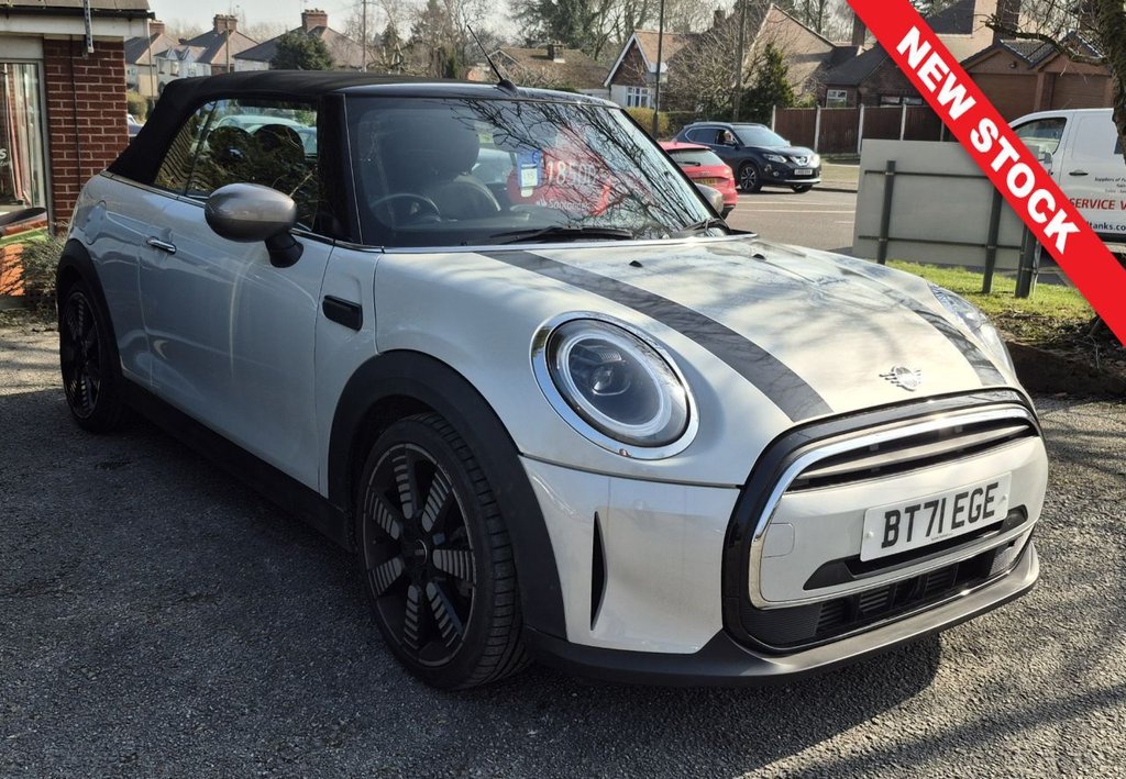 Insurance Group 21, 0 Previous Owners, ** You can reserve a car without any obligation to actually buy it by clicking on the green "Reserve Today" button on our website page all we ask is for a fully refundable £99 holding deposit ** ** We offer Nationwide Delivery on most cars, so you can easily buy a car without visiting us ** ** We have built our reputation on nearly 50 years of Trust & Customer Service ** Please see our muchvalued, genuine 5* reviews on Google, Autotrader & Facebook ** ** We are open Monday to Friday 9am 6pm, Saturday 9 5 and Sunday 10 4 ** Please call us first on 01773 743333 if you are travelling from out of our area **.12 Volt Socket in Front Centre Console, 18in Alloy Wheels Pulse Spoke, 3 Point Seatbelts on all Seats, 4 Lashing Eyes in Luggage Compartment, 8.8in Touch Screen with LED Ring, Active RollOver Protection, Air Conditioning Manual, Airbags, Alarm System, AntiLock Braking System ABS, Apple Carplay, Automatic Headlight Activation Switch, Bluetooth for Compatible Mobile Phone with Audio Streaming, Bonnet Stripes Black, Carbon Black Colour Line Knee Roll and Door Armrests, Chrome Highlights, Convertible Pack, Cruise Control with Brake Function, Cupholders, DAB Tuner and FM Tuner, Door Mirrors Caps in Silver, Door Sill Strips Metal with MINI, Dynamic Brake Lights, Dynamic Stability Control DSC, Easy Load Function, Electric Windows Front, ElectroMechanical Steering with Speed Dependant Steering Assistance, Electronic Gear Shifter, Electronic Vehicle Immobiliser, Exhaust Tailpipe Left with Chrome Finisher, Flexible Car Sharing Preparation, Floor Mats Velour, Folding Rear Seats 5050, Front Passenger ISOFIX and Airbag DeActivation Switch, Fuel Filler Cap in Body Colour, Glove Compartment, Heated Rear Window, Heated Windscreen Washer Jets, Instrument Cluster, Interior Lighting, Interior Trim MINI Yours Aluminium, Keyless Go, Leatherette Gearshift Lever and Handbrake Gaiters, LED Headlights with Closed Ring as Daytime Driving Lights, LED Reading Lights Vanity Mirror Lights Front Foot Well Lights Spotlights on Front Seats, Mechanical Seat Adjustment ForwardBack and Backrest for Front Seats Driver Seat Height Adjust, MINI Driving Modes, MINI ECall, MINI TeleServices, MINI Yours Lounge Leather Carbon Black, MINI Yours SoftTop, Model Logo Cooper on Right of Tailgate, Multifunction Controls for Steering Wheel, Navigation Pack, OnBoard Computer, PDC Park Distance Control Rear, Performance Control, Radiator Grille Chrome Border with Black HighGloss Slats, Rain Sensor Window Wipers, Rear Fog Light, Rear LED Lights with Union Jack Design, Rear Passenger ISOFIX, Side Scuttle Panels with Integrated Indicators, Single Tone Fanfare Horn, Speakers 4, Steering Column Height and Length Adjustment, Storage Compartments in Doors, Sun Visor with Vanity Mirrors, SunHeat Protection Glass, Tool Kit, TPWS Tyre Pressure Warning System, Walknappa Leather Steering Wheel with Grey Seam, White Indicators, White Silver