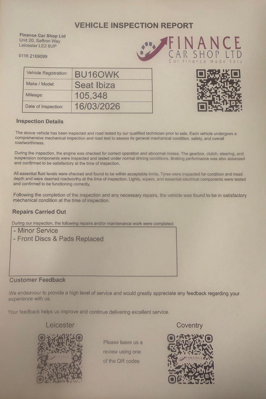 Insurance Group 13, 2 Previous Owners, JUST SERVICED, 2 FORMER KEEPERSA fantastic example of the SEAT Ibiza Connect, combining sporty styling, modern technology, and excellent fuel economy. This hatchback is perfect for city driving, commuting, or as a reliable first car.Key Features1.2 TSI turbo petrol engine responsive and fuel efficientEuro 6 compliant ULEZ friendly5door hatchback practical and easy accessBluetooth connectivity for calls and music streamingAir conditioningMultifunction steering wheelElectric windows & mirrorsStylish alloy wheelsWhy Choose the Ibiza?Sporty design with a fun driving experienceExcellent fuel economy and low running costsPractical interior with good boot spaceReliable and wellbuilt hatchbackPerfect ForFirsttime driversDaily commutersSmall familiesAnyone looking for a stylish and economical hatchback+ 6 MONTHS WARRANTY INCLUDED + 6 MONTHS BREAKDOWN COVER + EXTENDED WARRANTY AVAILABLE + FINANCE OPTIONS AVAILABLE UPON REQUEST + DELIVERY CAN ONLY BE ARRANGED ONCE THE VEHICLE HAS BEEN VIEWED & INSPECTED IN PERSON AT OUR PREMISES + PHOTO ID IS REQUIRED FOR ALL VIEWINGS AND TEST DRIVES + WE CAN BE REACHED VIA WHATSAPP ON 07458 300017 FEEL FREE TO MESSAGE US + PLEASE NOTE, THE PRICE IS FIXED ON THIS VEHICLE. KINDLY BE AWARE OF THIS PRIOR TO ARRANGING A VIEWING + WE HAVE OVER 50 VEHICLES IN STOCK. AS NOT ALL VEHICLES ARE HELD ON SITE, PLEASE ENSURE YOU CALL IN ADVANCE BEFORE MAKING YOUR JOURNEY + BANK TRANSFER ONLY + MORE CARS AVAILABLE AT:WWW.FINANCECARSHOPLTD.CO.UK +