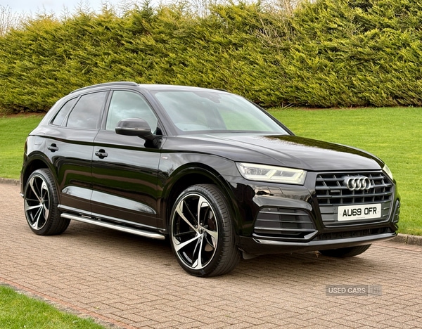 MagherafeltSeptember 2019 Audi Q5 40TDI Quattro SLine STronic in Mythos Black. Full Service History. Mot'd to March 2027.Loaded with spec including Half Leather / Alcantara Interior, Heated Seats, Navigation System, LED Headlights, Tech Pack, Privacy Glass, Audi Drive Select, DAB Radio, Side Steps, MultiFunctional Steering Wheel etc.Fitted with Brand New 22" Alloys & Tyres (Optional Extra £1295)FINANCE AVAILABLE AT KEEN RATES!!Viewing by Appointment Only Please