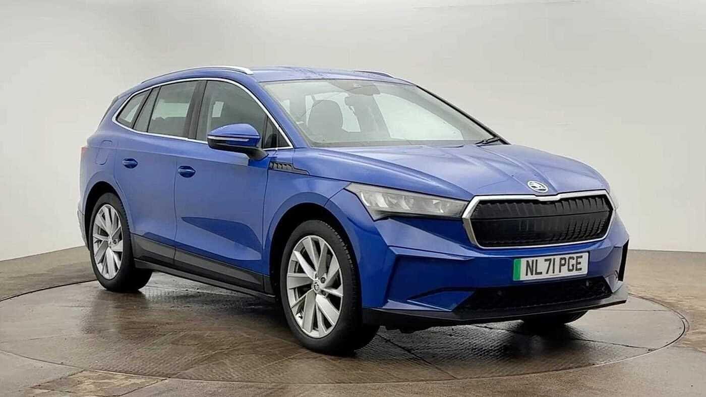 Bolton0 Previous Owners, 13" touchscreen display, Bluetooth system, Ecall, Electronic engine sound, Exterior temperature indicator, Gesture control, Rear parking sensor, Satellite navigation system, Skoda Connect iV remote services with charging, air conditioning and smart schedules, Smartlink wireless for apple carplay and wired for android auto, Speed limiter, Tailgate, Tailgate unlocking from outside, Virtual cockpit, Voice control system, Washer fluid level indicator, WiFi hotspot, 50 kW DC battery charging, 6m mode 3 cable (32A), 8 Speakers, DAB Digital radio, USBC ports (charging + data), Auto dimming rear view mirror, Body colour bumpers, Body colour door mirrors and handles, Door moulding light in multiple colours, Electric adjustable heated folding door mirrors with boarding spots and welcome logo, Electric front and rear windows, Heat insulating darkened glass in side and rear windows, Heat insulating glass in windshield, Heated rear window, LED third brake light, Light assistant (coming home/tunnel light), Rain and light sensors, Rear side wing doors, Rear spoiler, Rear window wiper with washer system and intermittent control, Safety reflectors on front and rear doors, 12V socket in boot, 3 seat bench in 2nd row, 4 foldable roof handles with rear coat hooks, 60:40 foldable rear seat with sliding adjustment and backrest angle adjustment, Boot lighting, Coat hooks on B pillar, Front and rear height adjustable headrests, Front courtesy lights, Front reading lights, High centre console with armrest, Illuminated and cooled glovebox, Interior door handle lighting in front and rear, Isofix attachment on front passenger seat, Isofix child seat fittings in outer rear seats with top tether, Laminated softtouch plastic knee rest, LED ambient lighting, Manually adjustable steering column, Pollen filter, Rear reading lights, Single front passenger seat, Sliding boot cover, Sunvisors with illuminated vanity mirrors, Umbrella in door panel, ECO Suite design pack Enyaq, 3 point height adj front seatbelts + pretensioners, Auto door release and activation of warning lights in the event of an accident, Central interaction airbag, Child safety lock, Driver and front passenger airbags, ESC (incl. ABS+MSR+ASR+EDS+HBA+DSR+RBS+MKB), Front and rear three point safety belt on all seats, Front assist includes AEB city/urban, Front disc brakes, Front passenger airbag deactivation switch, Front side airbags with curtain airbags, Rear drum brakes, Single tone horn, Tyre pressure monitor,