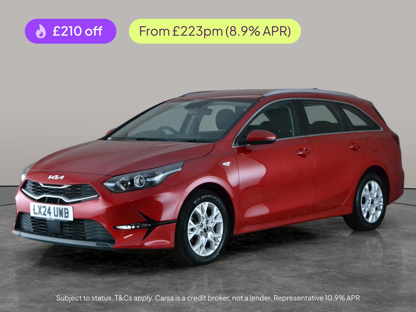 Insurance Group 14, 0 Previous Owners, Experience the practicality of the Kia Ceed Sportswagon in striking red. Enjoy Apple CarPlay for seamless connectivity and a reversing camera for easy parking. The lane departure warning system adds peace of mind on every drive, while cruise control ensures relaxed journeys. With Bluetooth audio streaming, keep your favourite music at your fingertips. Stylish 16in alloy wheels and air conditioning complete the package, making every drive a pleasure. 2 services recorded, last serviced on 27/02/2026 at 8,463 miles. MOT to 26/03/2027. Visit our website for service history, online valuation, full vehicle specification plus multiple images. This vehicle is VAT qualifying. Any feature/option specified here is from 3rd party data. We cannot guarantee the accuracy of any specification supplied by a 3rd party. We recommend that you physically check the specification of the vehicle on site prior to purchase. This information does not form part of the buying contract. Terms & Conditions apply. We have over 2,000 cars available from our 10 national branches, check our website to see all our stock. Our Trustpilot rating is 4.4/5 with over 9,000 reviews.