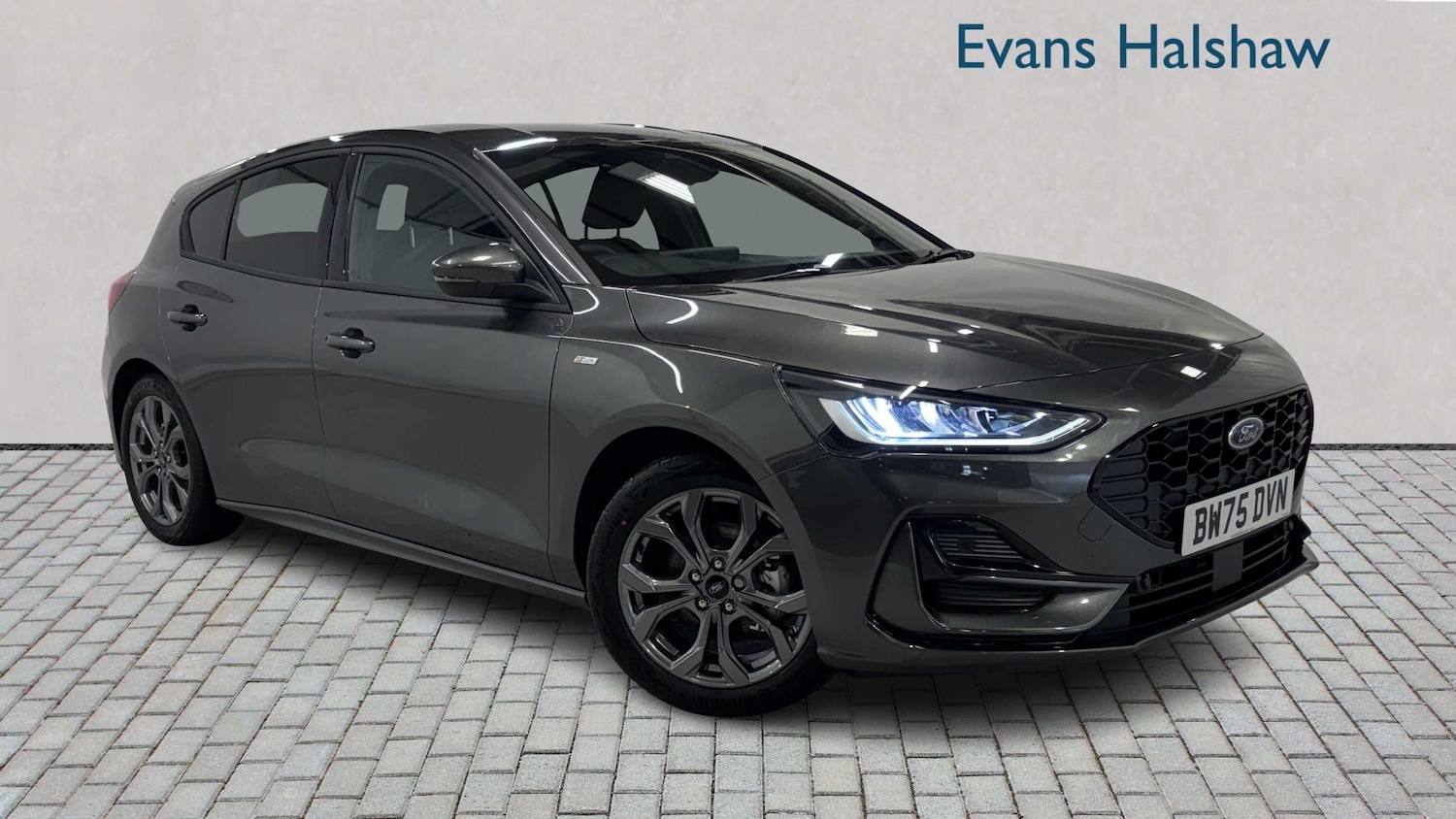 Insurance Group 15, Cloth Black with Red Stitching, Magnetic, 13.2in Touchscreen with SYNC4 Navigation, 4.2in Colour TFT Ice Blue Illumination Analogue Cluster with Trip Computer, Cruise Control with Adjustable Speed Limiter, Full Fixed LED Headlight with LED Daytime Running Lights, Parking Sensor Front and Rear, PreCollision Assist with Autonomous Emergency Braking and PedestrianCyclist Detection, Rear Lights LED, Selectable Drive Mode, Sports Tuned Suspension, 17in Alloy Wheels 5Spoke with Rock Metallic Finish, Door Mirrors ElectricallyOperated Heated PowerFoldable Puddle Lights Side Indicators, Polished Twin Exhaust Tailpipe, Quickclear Heated Windscreen, Rear Privacy Glass, Unique STLine Grille and Full Bodystyling Kit Large Body Coloured Rear Spoiler, Ford Key Free System Keyless Entry with Keyless Start, LaneKeeping Aid with LaneKeeping Assist, Thatcham Category Alarm with Power Door Deadlocks, Drivers Manual 4Way Seat Adjustment with Manual Lumbar Adjust, DualZone Electronic Air Temperature Control DEATC, Front Seat Passenger 2Way Manual Adjustment