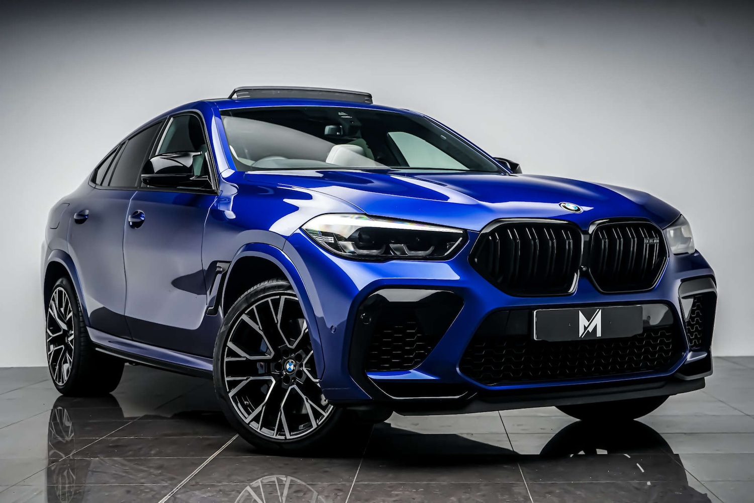 Wigan2 Previous Owners, This BMW X6 Competition is finished in Marina Bay Blue and this vehicle comes with the following specification Panoramic Glass Roof, Sky Lounge Comfort Plus Package Full Merino Leather in Silverstone with Black Interior Interior Trim BMW Individual Piano Black High Gloss.
