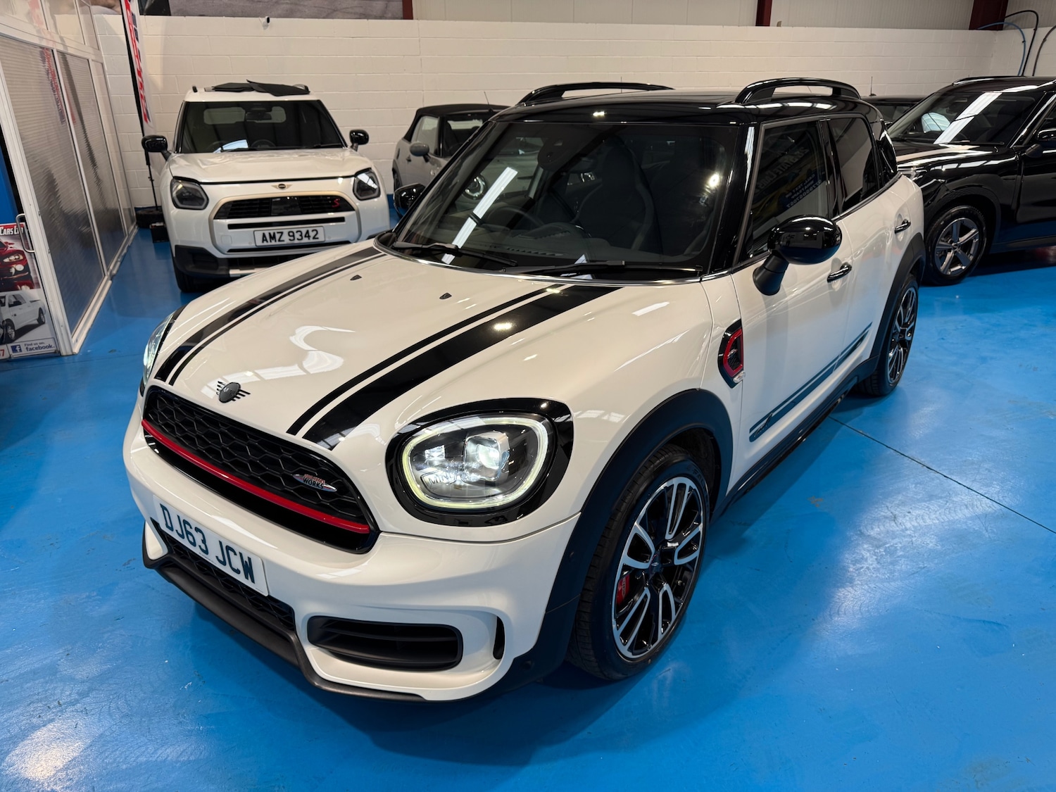 1 Previous Owner, 2023 23 MINI COOPER COUNTRYMAN 2.0 JOHN COOPER WORKS ALL 4 AUTO, ONLY 31169 MILES FULL SERVICE HISTORY, 2 KEYS AND BOOK PACK. MASSIVE SPEC CAR, FINISHED IN MINERAL WHITE PEARL WITH BLACK AND GRET HALF LEATHER JCW SPORTS HEATED SEATS, GLOSS BLACK INTERIOR TRIM, AMBIENT LIGHTING, DIGITAL DASHBOARD, LEATHER MULTI FUNCTION STEERING WHEEL, SPORTS MODES WITH PADDLE SHIFT, COMFORT PACK, KEYLESS ENTRY, KEYLESS GO, HEAD UP DISPLAY, HARMAN KARDON UPGRADED SOUND, PANORAMIC SUNROOF, SAT NAV MEDIA, APPLE CAR PLAY, BLUETOOTH AUDIO, DAB RADIO, DAUL CLIMATE CONTROL, CRUISE CONTROL, SPEED LIMITER, FRONT AND REAR PARKING SENSORS WITH REVERSING CAMERA, JCW MULTI SPOKE DIAMOND CUT JCW ALLOY WHEELS, BLACK PACK, BLACK ROOF, BLACK MIRROR CAPS, BLACK BONNET STRIPES, AUTO ADAPTIVE LED HEADLIGHTS, UNION JACK REAR LIGHTS, PUDDLE LIGHTS, AUTO WIPERS AND MUCH MORE. SUPERB THROUGHOUT CAT N RECORDED, FULLY SERVICED, 6 MONTHS WARRANTY, 12 MONTHS MOT ON COLLECTION OR DELIVERY. CHOICE OF 35 MINI CLASSIC, COOPER, CLUBMAN, COUNTRYMAN, JCW IN STOCK NOW, IF YOUR LOOKING FOR A MINI CALL RICHARD . CHECK OUT OUR GOOGLE REVIEWS 28 STATE CARS