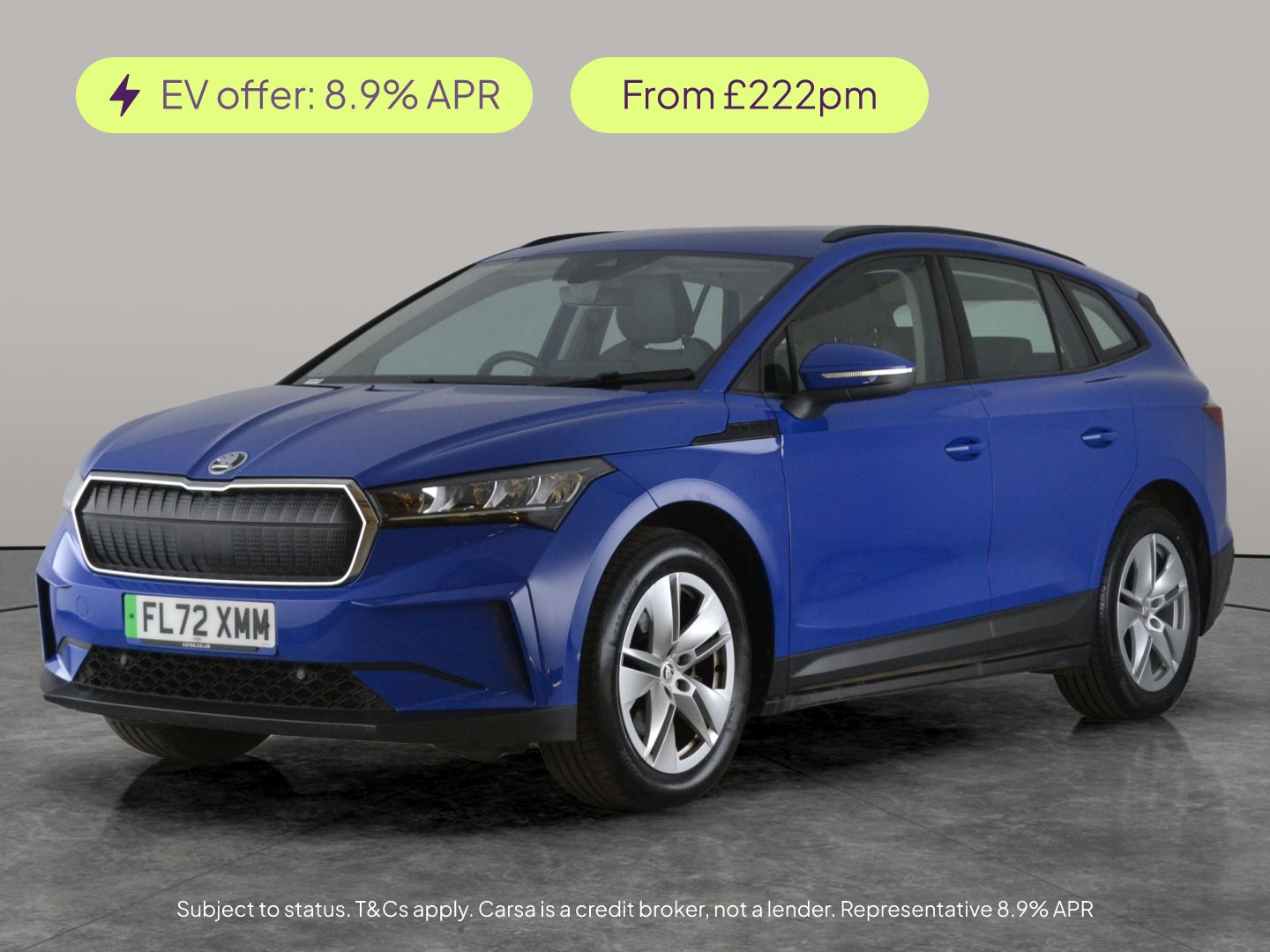 0 Previous Owners, Experience the future of driving with this blue Skoda Enyaq iV. Enjoy seamless connectivity with Apple CarPlay, WiFi, and SmartLink, while the integrated Sat Nav and Traffic Sign Recognition make every journey a breeze. Stay comfortable with dual zone digital climate control and cruise control. LED headlights and stylish 19in alloy wheels add a touch of sophistication, and practical black roof rails offer extra versatility. This electric SUV brings tech, comfort, and style together for your daily drive. 1 service recorded, last serviced on 14/10/2024 at 19,227 miles. MOT to 02/11/2026. Visit our website for service history, online valuation, full vehicle specification plus multiple images. This vehicle is VAT qualifying. Any feature/option specified here is from 3rd party data. We cannot guarantee the accuracy of any specification supplied by a 3rd party. We recommend that you physically check the specification of the vehicle on site prior to purchase. This information does not form part of the buying contract. Terms & Conditions apply. We have over 2,000 cars available from our 10 national branches, check our website to see all our stock. Our Trustpilot rating is 4.4/5 with over 9,000 reviews.