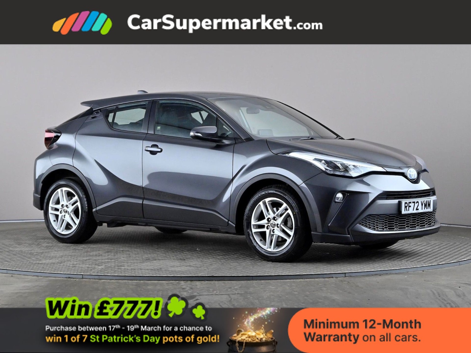Insurance Group 15, 0 Previous Owners, Toyota CHR 1.8 Hybrid Icon CVT (Grey) A stylish hybrid SUV offering impressive fuel efficiency and smooth automatic driving. Equipped with adaptive cruise control, Apple CarPlay/Android Auto, Bluetooth, lane departure warning and parking sensors. Minimum 12month warranty. Last serviced 14/03/2026. MOT due 09/02/2027.