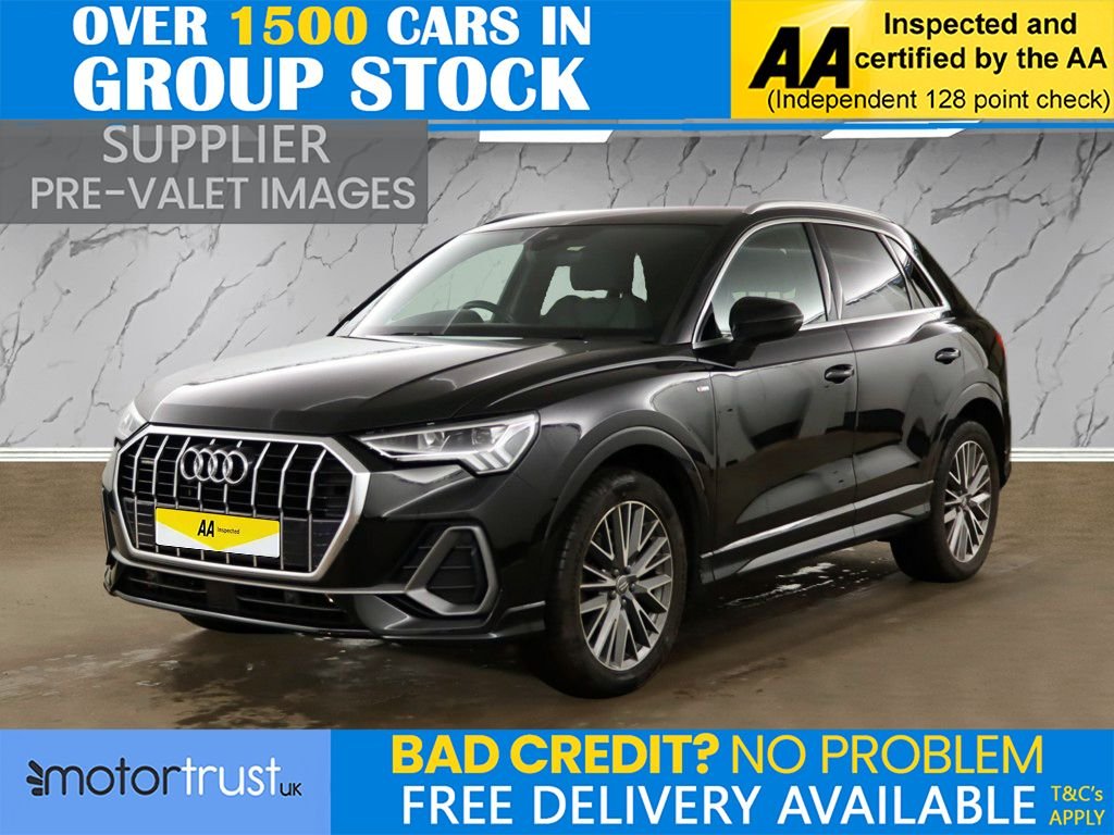PrestonInsurance Group 31, 1 Previous Owner, This 2019 Audi Q3 TFSI S line boasts a clear vehicle history and an MOT valid until November 2026, offering peace of mind for its next owner. This stylish SUV is equipped with a responsive 2.0 litre petrol engine and Audis renowned four wheel drive system, ensuring confident handling in various conditions. The S line trim level adds a touch of sporty sophistication, while the Euro 6 emissions classification means it meets current environmental standards. Inside, youll find the Audi Smartphone Interface with wireless Apple CarPlay, allowing seamless integration of your digital life. Experience the convenience of Audi Side Assist for enhanced safety and rear parking sensors to make manoeuvring effortless. The dual zone electronic climate control ensures comfort for all occupants, and the Bluetooth interface keeps you connected on the go. With a generous boot space, this Q3 is practical for everyday use and weekend adventures alike. Its impressive acceleration, reaching 0 to 60 miles per hour in just 7.3 seconds, demonstrates its dynamic performance, setting it apart from other vehicles in its class. Part Exchange Welcome. All Majors Cards Accepted. We Have Finance Available. A Wide Range of Warranties. We Also Offer Low Cost, Nationwide Delivery Available From £1.50 a Mile. **Every endeavour is made to ensure specifications and descriptions are correct. Due to model changes specification may vary. Phone for details. MPG figures shown are government official figures.**.Pulse ClothTwin Leather Sport Seats BlackRed with Rock Grey Stitching, Mythos Black, 1 x USBC and 1 x USBA Port with Charge and Data Functions, 19in Alloy Wheels 5TwinSpoke Dynamic, 3Spoke Leather MultiFunction Steering Wheel S Badging and Grips in Perforated Leather with Contrast Stitching, 6 Passive Loud Speakers, 6Airbag System, Adjustable Rear Seat BenchBackrest with Centre Armrest and Cupholder, Aluminium Look Interior Elements, Aluminium Roof Rails, Aluminium Window Trims, Ambient Lighting Pack, Anti Theft Locking Wheel Bolts, AntiTheft Alarm, Audi Connect Infotainment Services Plus including Amazon Alexa Integration (3 Year Subscription From New), Audi Connect Safety and Service ecall, Audi Drive Select, Audi PreSense Front with Pedestrian and Cyclist Recognition, Audi Side Assist, Audi Smartphone Interface Includes Wireless Apple CarPlay, Audi Virtual Cockpit 10.25in Display, Auto Dimming and Frameless Rear View Mirror, B and CPillar Trim in HighGloss Black, Bluetooth Interface, Body Coloured Door Mirrors, Bumpers in Full Body Colour Paint Finish, CameraBased Traffic Sign Recognition, Cloth Headlining in Black, Cruise Control with Speed Limiter, DAB Digital Radio, Detail in Dashboard Around the MMI Touch Colour Display in Glass Look Black with Surround in Aluminium Look, Door Mirrors Electrically Folding Adjustable and Heated with Integrated LED Side Indicators and Kerbview Function for Passenger Side, DualZone Electronic Climate Control, ESC Electronic Stabilisation Control inc ABS ASR and EDL, Electric Windows Front, Electromechanical Parking Brake, Electronically Operated Child Locks, First Aid Kit and Warning Triangle, Frame of Front Side Air Inlets in Platinum Grey Matt, Front Centre Armrest, Front Spoiler Blade in Platinum Grey Matt, Front Spoiler in Selenite Silver Matt, Front and Rear Floor Mats in Black with Contrast Stitching in Rock Grey, Gear Knob in Perforated Leather, Grille Surround in Silver Chrome, Grille Vertical Bars in Aluminium Silver Matt, Hill Descent Control, Hill Hold Assist, ISOFIX Child Seat Mounting for the Front Passenger Seat with Front Passenger Airbag Deactivation and ISOFIX Child Seat Mounting and Top Tether for the Outer Rear Seats, Illuminated Door Sill Trims with S Logo, Inlays Matt Brushed Aluminium Dark, Interior Lighting, LED Headlights with LED Daytime Running Lights and Dynamic Rear Indicator, LED Rear Lights, Lane Departure Warning, Leatherette Armrest