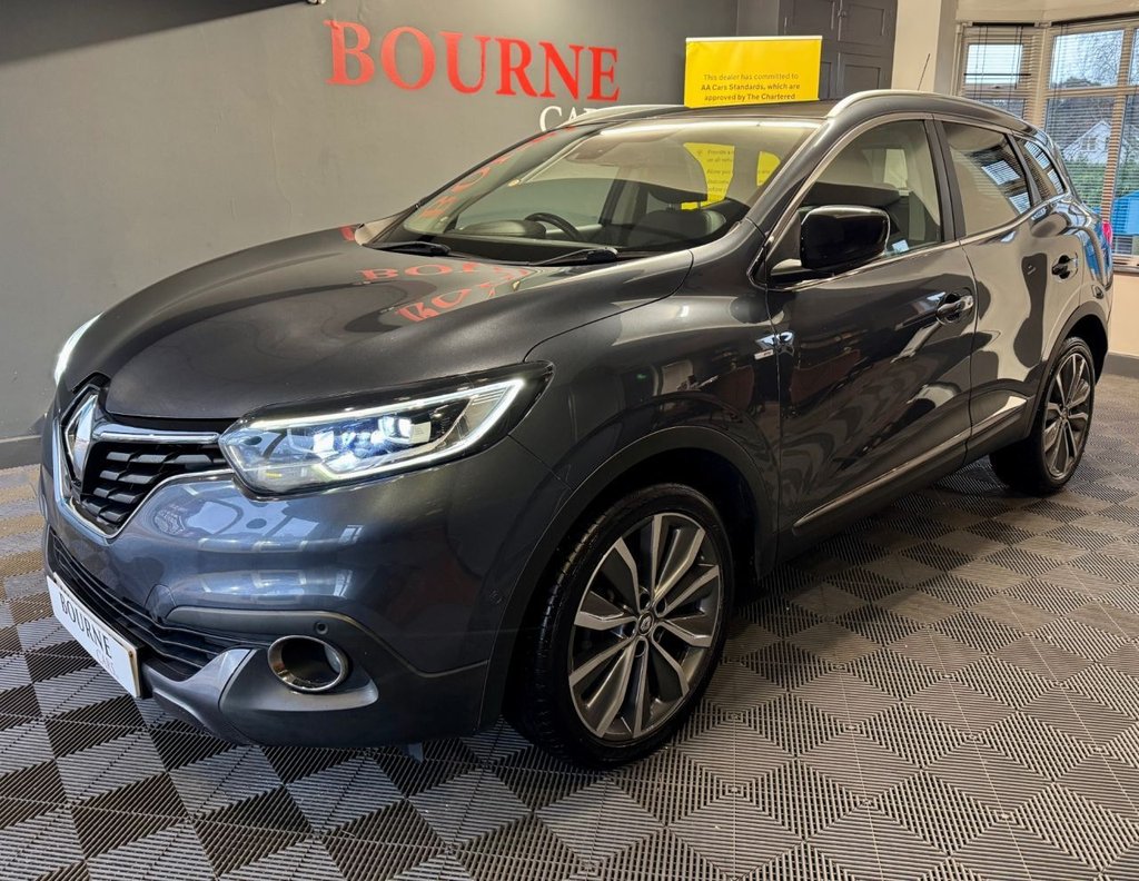 BournemouthInsurance Group 16, 2 Previous Owners, Renault Kadjar Signature Nav with full service records. Services were carried out at: 17183mls, 20522mls, 33924mls, 39372mls, 47689mls 69063mls, 76247mls in October 2025. MOT 14th of October 2026. 2 Former Keepers. Road Tax: £195/year, Average Fuel Consumption: 48.7MPG, Insurance Group: 16. This vehicle is fitted with Satellite Navigation, Panoramic Roof, Parking Camera, Blind Sport detection, Lane Assist, Front & Rear, Parking Sensors, Bose Sound Upgrade, Cruise Control, Air Conditioning, Bluetooth Phone Connection, USB&AUX Port. We offer a wide variety of handpicked, quality inspected cars to suit most budgets. When you visit our premises our friendly and professional staff will help you choose the right car to meet your needs. You can rest assured that you are buying a quality vehicle from a reputable dealership thats backed with a comprehensive warranty. Providing outstanding customer satisfaction means our customers return time and time again. Our 5 star reviews are available on Autotrader, Google or Facebook. We are confident in the quality of all cars sold, but as we all know, when it comes to anything mechanical, things can go wrong from time to time. Every car purchased from us comes with a warranty. Warranties managed by AutoGuard, covering you for many eventualities, and can be used at any VAT registered garage nationwide. We offer excellent part exchange prices on a wide range of vehicles. Call us, or pop in and we will give you a valuation straight away..Satellite Navigation, Parking Camera, Panoramic Roof, Blind Spot Monitor / Lane Assist, Bose Sound, 19in Alloy Wheels Diamond Cut Zeus, 3 Point Inertia Reel Seatbelts, ABS with EBD Electronic Brake Distribution and Emergency Brake Assist, Accessory Power Point, Adjustable Dashboard Illumination, Air Recirculation, Airbags Drivers Two Stage Auto Adaptive, Airbags Front Lateral, Airbags Front Passenger Deactivation, Airbags Front Passengers Two Stage Adaptive, Airbags Front and Rear Curtain, Android Auto, AntiDrill Door Locks and Ignition Barrel, Apple CarPlay, Armrest Front Centre, Assisted Parking Brake, Automatic Headlights and Windscreen Wipers, BOSE Energy Efficient Sound System, Body Sided Moulding with Chrome Insert, Central Rear Armrest with Cup Holders, Chrome Detailing, Chrome Window Surrounds, Climate Control Automatic Dual Zone, Climate Pack, Convenience Pack, Courtesy Lights Rear, Cruise Control with Speed Limiter, Daytime Running Lights LED, Display Digital Speedometer 7in TFT Screen, Door Handles Body Coloured Front, Door Mirrors Body Coloured Shell, Door Mirrors Electrically Operated Heated Folding, DoorBoot Open Warning Light, Driver and Passenger Seat Belt Undone Warning Audible Alert, Dust Protection Kit, ESP Electronic Stability Programme with ASR AntiSkid Regulation and UCL Understeer Logic Control, Eco Mode, Electric Windows Front, Electric Windows Rear, Electrochromatic Rear View Mirror, Electronic Parking Brake, Exterior Temperature Sensor, Extra Tinted Windows Rear and Tailgate, Fingertip Audio System Remote Control, Fleet Management, Fog Lights with Cornering Function, Front and Rear Skids, Front and Rear Towing Rings, Full Flat Floor, Glovebox Light, Gravel Protection Kit, HSA Hill Start Assist, Headlights Full LED, Headrests Front Fully Adjustable, Headrests Rear Height Adjustable x3, Heated Rear Windscreen, Heating Ducts to Feet of Rear Passengers, Height Adjustable Front Seat Belts, ISOFIX Child Seat Fixing Points Outer Rear Seats, Indicators with Side Repetitions, Insurance Approved Category 1 Alarm System and Immobiliser, Integrated Fuel Filler Cap, Interior Courtesy Light Controlled By All 4 Doors, Keycard Hands Free, Low Fuel Level Warning Light, Luggage Compartment Illumination, Multi Position Trunk Floor, Oil Level Gauge, Panoramic Sunroof, Parking Sensors Front and Rear, Passenger Height Adjustment Seat, Pollen Filter, Power Assisted Steering, Prot