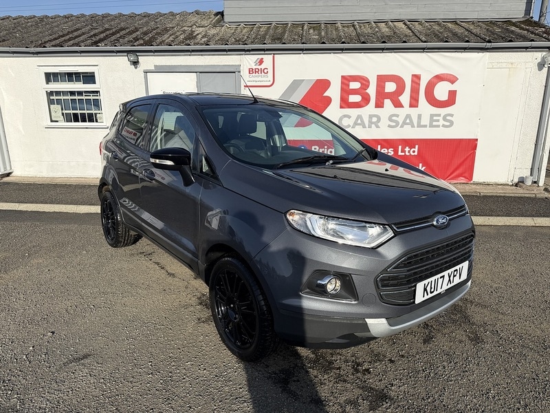 KeltyInsurance Group 13, 2 Previous Owners, JUST ARRIVED, MORE PICS TO FOLLOW. Call today to arrange a viewing and test drive.All cars come with a Comprehensive 6 Months Parts & Labour Warranty, and are MOT'd prior to sale. We offer Competitive Finance rates from a variety of lenders for all credit scores. Bank Transfer, Debit & Credit Cards accepted. After Hours Indoor appointments available. All Part Exchanges welcome.All Specifications are populated via CAP / HPI. Although these specs are noramlly very accurate, it is up to the purchaser of the vehicle to do their own checks for confirmation. Specifications quoted are not guaranteed, and do not form part of any sales contract. Brig Car Sales Ltd is a small family run business. All our cars are handpicked and comprehensively checked & tested prior to sale. We pride ourselves on honesty & quality and enjoy repeat business. Feel free to call 7 days a week 8am9pm with any questions. MOT & Service Plans can be arranged. We are conveniently located at 175 Cocklaw Street, Kelty, KY4 0DH. Only 100 yards from the M90 motorway slip road, 20 mins from Edinburgh Airport, and less than 10 minutes from the Queensferry Crossing. We will happily collect you free of charge from Inverkeithing / Cowdenbeath Train Stations, Halbeath Park & Ride Bus Station, or Edinburgh Airport. Get in touch today! Call our Landline on 01383 247228. Call or WhatsApp our Mobile on 07904268398, or drop us an email at: salesbrigcarsales.co.uk. Front and Rear Power Points 12V, Sony RadioCD with DAB, Cruise Control, Gear Shift Indicator, Trip Computer, Tyre Pressure Monitoring System, 17in Alloy Wheels 7x2 Spoke Black, Black Contrast Roof, Door Mirrors Black Housing Electricallyoperated with Integrated Side Indicator, Front Bumper Body Colour with Dark Valance, Front Lower Grille Chrome, Front Upper Grille Chrome, Locking Wheel Nuts, Rear Bumper Body Colour with Dark Valance, Rear Privacy Glass, Scuff Plates Silver, Silver LowerBumper Lip Front and Rear, Windows Front Power with OneTouch OpeningClosing on Drivers Side, Windows Rear Power, Front Fog Lights with Integrated Daytime Running Lights and Chrome Surrounds, Headlights Automatic Halogen with LED Signature Lights, Air Conditioning Electronic Automatic Temperature Control EATC, Armrest Drivers, Auto Dimming Rear View Mirror, Courtesy Lights Front and Rear Centre with Theatrestyle Dimming, Floor Mats Carpet Front and Rear, Front Seat Drivers Manual Height and ForeAft Adjustment, Front Seat Drivers Manual Lumbar Support Adjustment, Front Seat Passengers ForeAft Adjustment, Front Seat Under Passenger Seat Stowage, Front Seats 2Way Head Restraint UpDown, Front Seats SeatBack Map Pockets, Gearshift Knob Leathertrimmed with Black Insert and Aluminiumfinish Ring, Interior Door Lever Chrome Finish, Package Tray, Rake Adjustable Rear Seat, Rear Seat 6040 Split Folding Seat Back and Cushion with MultiStep Recline Function, Steering Column Rake and Reach Adjustment, Steering Wheel 3spoke Leathertrimmed Remote Audio Controls, Threshold Plates Front Stainless Steel with EcoSport Logo, TieDown Hooks, Wipers Front Automatic with Rain Sensor, EPAS Electric Power Assisted Steering, Front Suspension Independent with MacPherson Struts and AntiRoll Bar, Rear Suspension SemiIndependent Twist Beam with Twin Gas and OilFilled Shock Absorbers, Sports Suspension, Airbags Driver and Front Passenger, Airbags Drivers Knee, Airbags Front and Rear Side Curtain, Airbags Front Passenger DeActivation Switch, Airbags Front Side, AntiLock Braking System ABS with Electronic Stability Control ESC, Child Locks, Ford EasyFuel Capless Refuelling System, Ford Keyfree System Keyless Entry with Ford Power Starter Button, Hill Start Assist, IPS Intelligent Protection System, Seats ISOFIX Mounting Provision for Child Seats Outer Seats Only, Thatcham Alarm, Wipers Rear WashWipe Intermittent