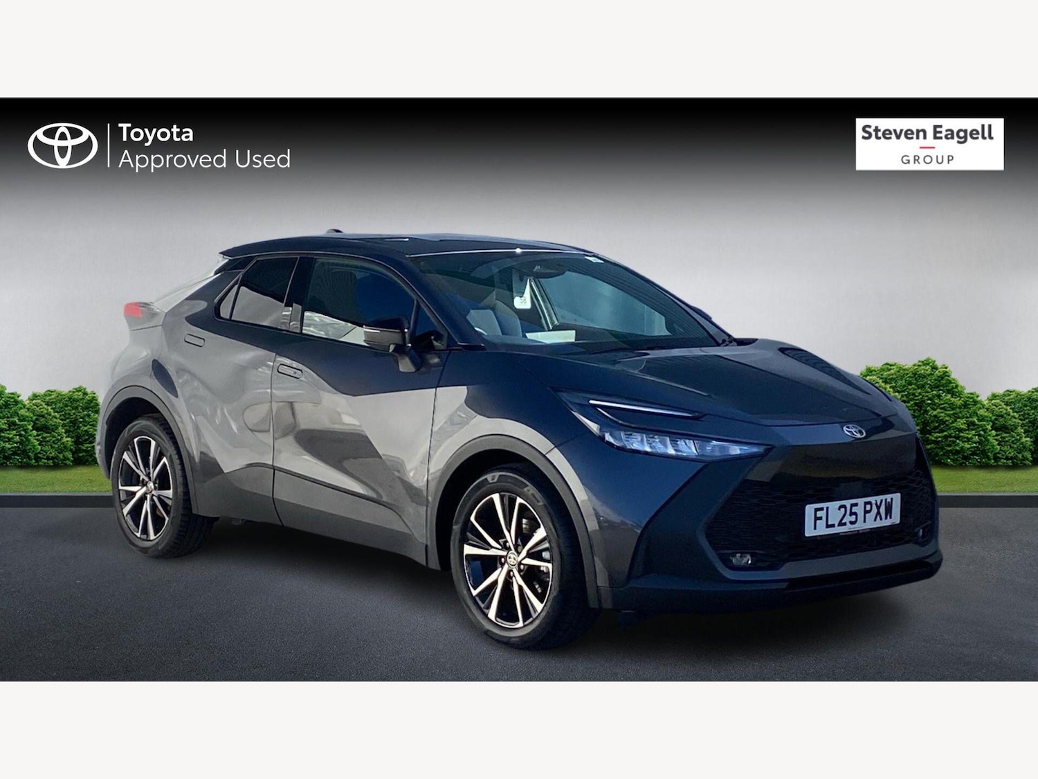 0 Previous Owners, Franchise Approved, This 2025 Toyota CHR VVTh Design is a superb example, having had only one owner from new and carrying Toyota manufacturer approval. This stylish hybrid SUV features a 1.8 litre petrol hybrid engine, meeting Euro 6 emission standards. Its Design trim level comes equipped with a suite of advanced parking assistance systems, including a reversing camera with rear parking sensors and intelligent front parking sensors with clearance sonar and automatic braking. You'll also appreciate the convenience of the remote air conditioning system and the clear visibility provided by the LED reflector headlights.The Toyota CHR VVTh Design stands out with its low CO2 emissions, making it an environmentally conscious choice. Furthermore, its placement in a low insurance group means that running costs are kept to a minimum, offering you excellent value. These highlights demonstrate how this particular CHR is a more economical and accessible option compared to many other vehicles in its class.