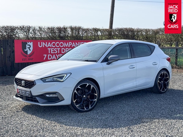Whitehead CarrickfergusInsurance Group 19, 1 Previous Owner, Check out what's all included in this SEAT Leon eTSI MHEV FR Hatchback 1.5 Automatic Petrol Hybrid:. Media system plus with navigation.. Digital cockpit.. Full link smartphone integration.. Park assist (inc front/rear parking sensors).. SEAT drive profile with 4 modes.. Front sports seats.. Front and rear parking sensors.. Wireless smartphone charging pad.. USB C ports.. Flat bottomed multi function steering wheel.If you like the look of this car and would like to come for a look or an unaccompanied test drive feel free to call down anytime or get in touch to make an appointment. We are open 7 days a week for your convenience!We have one of the largest numbers of cars for sale in our area with up to 200 cars in stock ready to view! We stock a variety of makes and models such as Audi, BMW, Seat, Range Rover, Mercedes, Jaguar and many more!All our cars come warranted by Jack Reid Cars meaning that we make all our decisions in house unlike unreliable warranty companies with too many terms and conditions.We look forward to hearing from you!This car is shown with an optional new alloy wheel and tyre upgrade or it can be returned to the standard wheels, whichever suits you best. Please contact sales for pricing.
