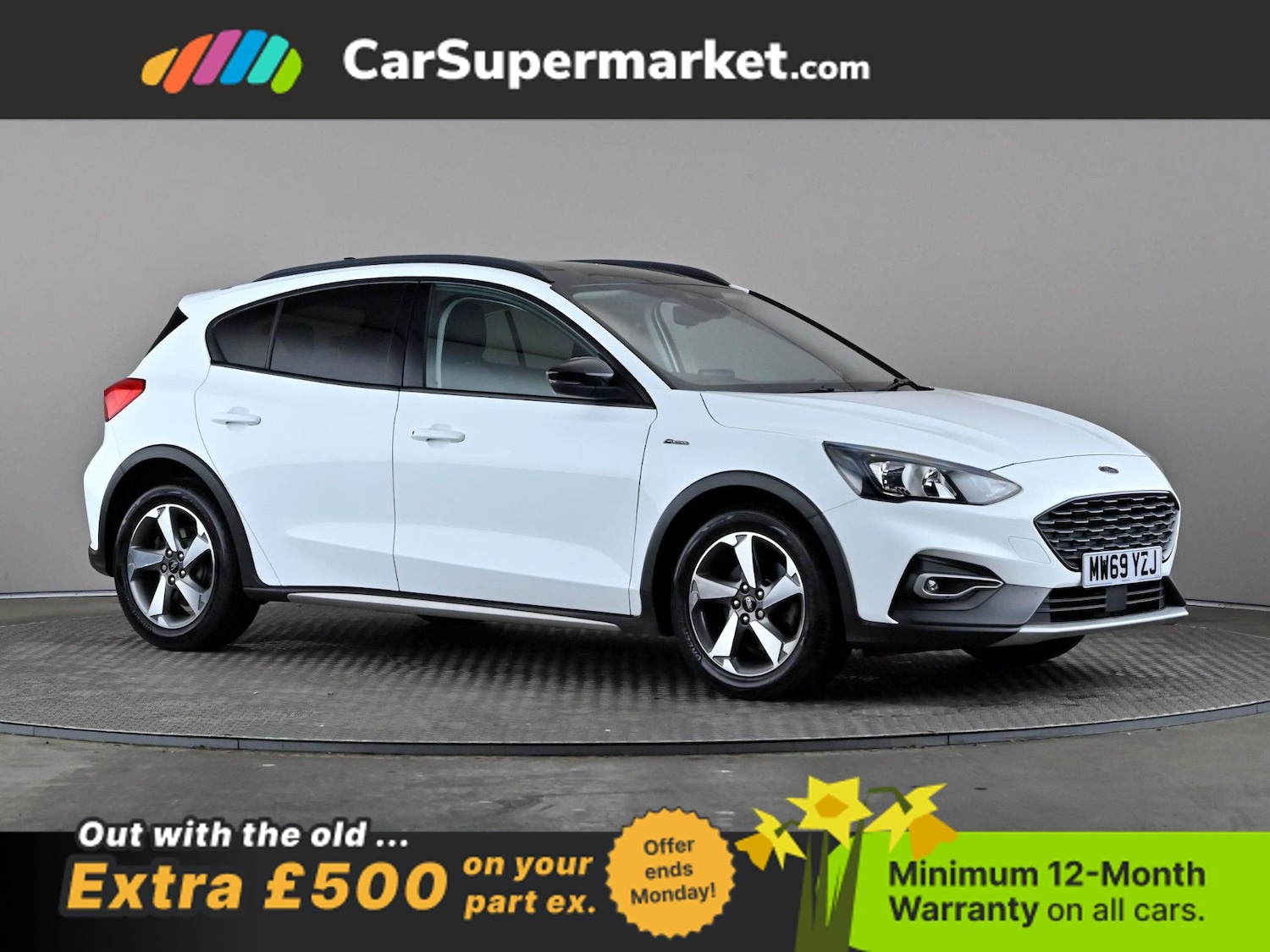 Insurance Group 13, 1 Previous Owner, Ford Focus 1.0 EcoBoost 125 Active (White) A practical hatchback with SUVinspired styling. Includes sat nav, Apple CarPlay/Android Auto, lane departure warning and privacy glass. Minimum 12month warranty. MOT due 15/11/2026.