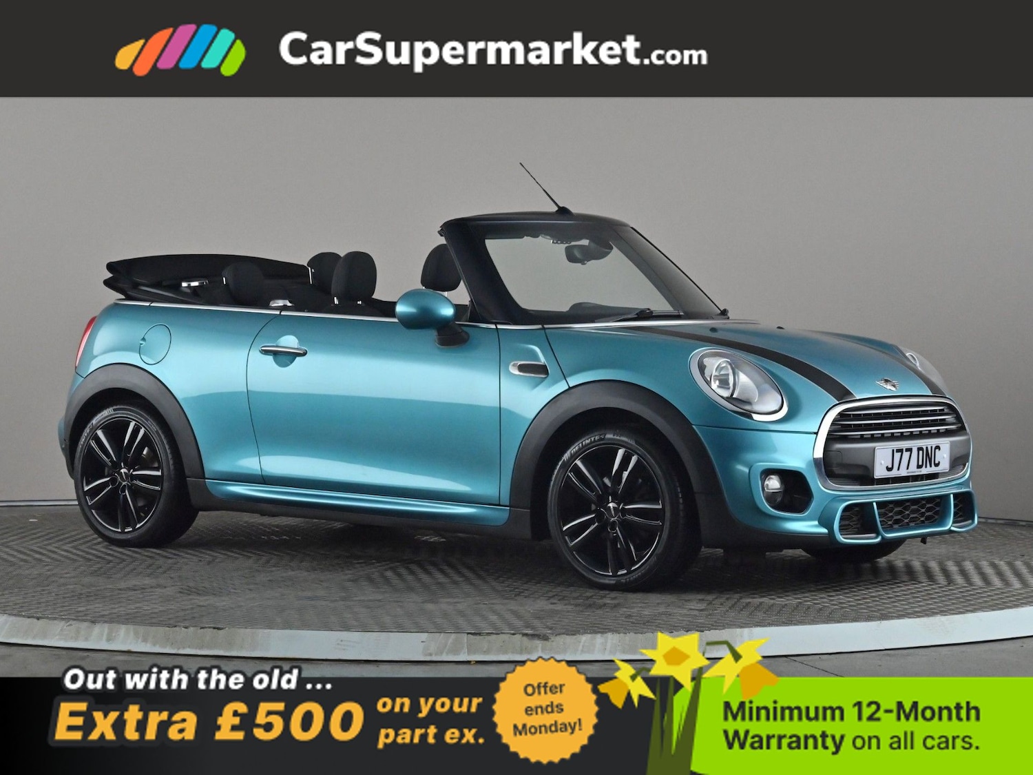 Insurance Group 19, 2 Previous Owners, This vehicle is fitted with a private registration, but it can be removed on request. Finished in Caribbean Aqua, this Mini Convertible Cooper with JCW Sport Pack offers iconic styling with opentop driving enjoyment. Highlights include digital radio. The vehicle also benefits from optional extras including 17inch Track Spoke alloy wheels in black, bonnet stripes in black, John Cooper Works Sport Pack, wind deflector, Firework cloth interior in carbon black and Caribbean Aqua paint, with factory options totalling £2,240.