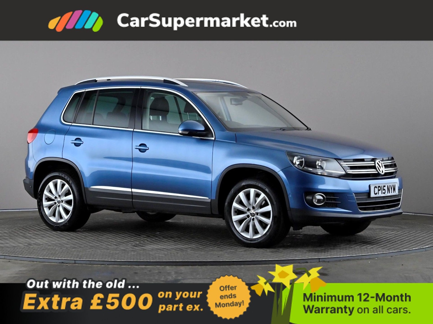 Insurance Group 20, Volkswagen Tiguan 2.0 TDi BlueMotion Tech Match 4MOTION 150 DSG (Blue) Midsize SUV with comfort and connectivity features. Includes Bluetooth, sat nav, parking sensors, and digital radio. Minimum 12month warranty. MOT due 25/07/2026.
