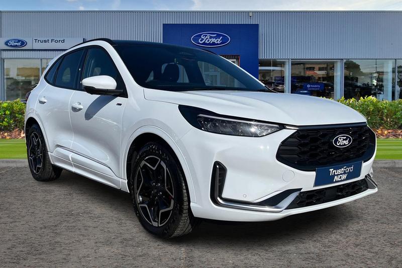 Insurance Group 20, 12.3 digital colour instrument cluster, 360 degree view camera, Clear exit assist, Cross traffic alert with active braking, eCall (emergency call), Ford easy fuel, Ford SYNC 4 Navigation with 13 touchscreen, DAB radio, emergency assistance, Andriod Auto/Apple CarPlay, 5G modem & Ford Pass connect, Front and rear parking sensors, Hands free power tailgate, Lane centering assist, Lane keeping aid with lane departure warning, Power assist steering, Selectable drive modes, Service interval indicator, Auto headlamps with high and low beam, Black roof rails, Body colour bumpers, Front LED fog lamps, Large rear spoiler, LED daytime running lights, LED rear lights, LED third brake light, Pop out door edge protectors, Power front/rear windows with global close, Power heated folding door mirrors with puddle lights, memory function and camera, Power opening panoramic roof, Quickclear heated windscreen, Rain sensing wipers, Rear privacy glass, Rear side wing doors, Rear wiper, STLine body styling kit, 2nd row sliding seats, Electronic automatic temperature control (EATC), Front and rear head restraints, Partial premium touch sensico upholstery, Rear centre head restraint, Single front passenger seat, Sports seats, 3x3 point rear seatbelts, Airbags front driver/passenger, front and rear curtain, Drivers knee airbag, Dynamic brake support, Electronic stability control (ESC) and ABS, Evasive steering assist, Ford MyKey Gen 2 safety system, Manual child proof rear door locks,