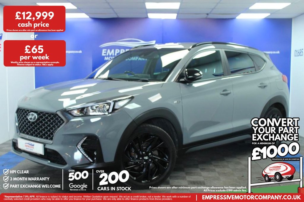 Insurance Group 15, 2 Previous Owners, ****HOT HYUNDAI**** Just in! This Stunning 2020 HYUNDAI TUCSON 1.6 CRDi MHEV N Line SUV 5dr Diesel Hybrid Manual Euro 6 (s/s) (136 ps) Finished In Grey! 81,998 Miles 1.6L Electric Diesel 6 Speed Manual 19" Gloss Black Wheels Parking Sensors Reversing Camera Roof Bars Electric Powered Folding Mirrors Keyless Entry Keyless Start Electric Handbrake Auto Hold Stop Start Downhill Brake Control Half Leather Seats Sport Mode Normal Mode USB Charging Port Automatic Dual Zone Climate Control Heated Seats Satnav Bluetooth Automatic Window Wipers Automatic LED Headlights Voice Assistant Cruise Control Speed Limit Traction Control System Lane Assist .12V Power Outlet Front Console and Luggage Compartment, 19in Alloy Wheels, 6 Airbags Front Front Seat Side and Curtain, 6 Speakers 2 Tweeters 2 Front Door 2 Rear Door, 8in Touchscreen Satellite Navigation including Traffic Messaging Channel Mapcare and Live Services, ABS AntiLock Brake System, Active Bonnet System, Adjustable Head Restraints, Adjustable Intermittent Front Windscreen Wipers with Aero Wiper Blade, Air Conditioning Dual Zone Climate Control, Armrest Front with Storage, Armrest Rear Centre with Cup Holders, Automatic Dimming Rear View Mirror with Compass, Automatic Headlights with Dusk Sensor, Automatic Windscreen Wipers with Rain Sensor, Autonomous Emergency Braking AEB, BAS Brake Assist System, Black Headliner, Bluetooth Connectivity, Body Colour Bumpers, Bottle Holders Front Centre Console and Door, Childproof Rear Door Locks, Cruise Control with Speed Limiter, Curtain Airbag Rollover Sensor, DAB Digital Radio, Daytime Running Lights LED, DBC Downhill Brake Control, Deadlocks, Digital Clock, Door Courtesy Lights, Door Mirrors Electric Adjustment and Heated with Power Folding Function, Door Mirrors with Integrated Indicators Black, Drivers Seat Height Adjustment Manual, Drivers Seat Lumbar Support Electric, Electric Parking Brake, Electric Windows Front and Rear with Drivers AntiTrap and OneTouch UpDown Control, ESP Electronic Stability Programme, ESS Emergency Stop Signal, Exterior Door Handles Body Coloured, Flex Steering, Front Fog Lights, Front Passenger Airbag DeActivation Switch, Front Passenger Seat Height Adjustment Manual, Glove Compartment with Cooling Function and Illumination, HAC HillStart Assist Control, Headlights Halogen Projector, Heated Front Seats, Immobiliser, Interior Door Handles Chrome Effect, Interior Light Luggage Compartment, Interior Light Map Reading Lights, ISOFIX Child Seat Anchorage Points Rear Outer Rear, Lane Keep Assist LKA, Locking Wheel Nuts, Luggage Cover, Luggage Hooks, Luggage Net, N Line Badging, N Line Branded Gear Stick, N Line Branded Leather Wrapped Steering Wheel, N Line Exclusive Front and Rear Bumpers, N Line Grille, Parking Sensors Front and Rear, Parking System Rear Camera, Perimeter Alarm, Phone Connection Android Auto, Phone Connection Apple CarPlay, Positioning Lights LED, Power Assisted Steering, Privacy Glass Rear Windows and Tailgate, Rear Lights LED, Rear Seats Reclining Manual, Remote Central Locking,