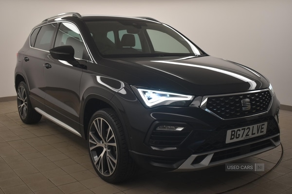 LisburnInsurance Group 19, 0 Previous Owners, The SEAT ATECA 2.0 TDI 150 Xperience Lux automatic offers a refined driving experience for those seeking reliability and comfort in a modern diesel vehicle. With 47,887 miles recorded, this example demonstrates both durability and continued appeal. The 2.0 litre engine paired with a DSG automatic gearbox delivers smooth and responsive performance, while features such as dual zone climate control, heated front seats, and heated steering wheel enhance daily journeys in all weather.Finished in black, the ATECA presents a distinguished appearance complemented by chrome roof rails, chrome side window trim, and body colour bumpers. Black simulated exhaust pipes, black wheel arch surrounds, and dark tinted rear windows contribute to a sophisticated look, while the chrome front grille frame and hot stamping on the front grille provide subtle highlights. Full LED headlamps with dynamic range control, LED rear tail lights with dynamic indicators, and front fog lamps with a cornering function ensure visibility and add to the modern styling.The interior is designed for both comfort and practicality, featuring leather upholstery with front comfort seats, a leather steering wheel and gear knob, and adjustable driver and passenger seats with lumbar support. Convenience is further enhanced by an electric tailgate with virtual pedal, rear armrest, and a drawer under the right front seat. The 60/40 split folding rear seat, ISOFIX points, and multiple storage solutions offer flexibility for a range of uses.This ATECA benefits from advanced specification, including a 10'' digital cockpit, wireless phone charger, wireless full link smartphone integration, and selfparking functionality with front and rear parking sensors. Safety features are comprehensive, with electronic stability control, multiple airbags, hill hold control, tyre pressure monitoring, and a precrash system. Additional highlights include a rear view camera, top view camera, progressive power assisted steering, SEAT drive profile with selectable modes, and keyless entry for added convenience