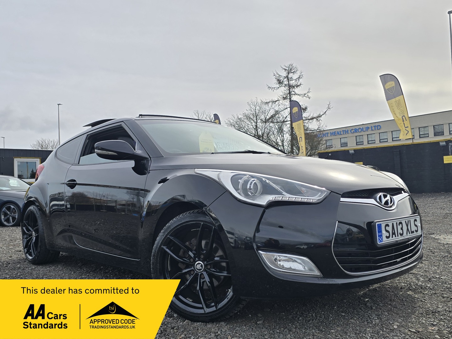DundeeInsurance Group 16, 2 Previous Owners, Partial Service History, **STUNNING EXAMPLE** 2013 (13) Hyundai Veloster SPORT 1.6 GDI Petrol Coupe 138 BHP ULEZ Compliant 6 speed manual transmission, Black colour, clean condition throughout, drives faultlessly, two previous owners since new, only 61,634 miles with main dealer service history, this superb value Veloster comes fully equipped with sliding & tilting panoramic sunroof, full leather upholstery (Black), multifunction steering, cruise control, climate control, heated seats, USB input, AUX connection, Bluetooth connectivity, remote central locking, remote control boot, fog lights, 18 inch alloy wheels (Gloss Black), privacy glass, keyless start, parking sensors, traction control & much more! All documents & 2 remote keys present! HPI CLEAR! Fresh 12 Months MOT & Service Low Mileage Example Fantastic Specification Superb Value 3 Months Premium Autoguard warranty 12 months AA breakdown cover Free Local Delivery NATIONWIDE delivery available (please call for quote) Finance available from 8.9% subject to status Dundee's first AA Approved independent dealership Viewing highly recommended Part exchange welcome Alpine Motor Company is a familyrun business located in Dundee, Scotland. With a wealth of experience in the automotive industry, our focus is to supply quality preowned vehicles and deliver an exceptional service that meets the needs of every customer. We are a fully licensed & FCA regulated car dealership, in addition to this we are approved by the AA Cars Standards so be assured that you will receive only the best from us!Yard 1, Dunsinane Industrial Estate, Kinnoull Rd, Dundee DD2 3XRMonSat 9am 6pmSun 10am 1pmAfterhours viewing available on request