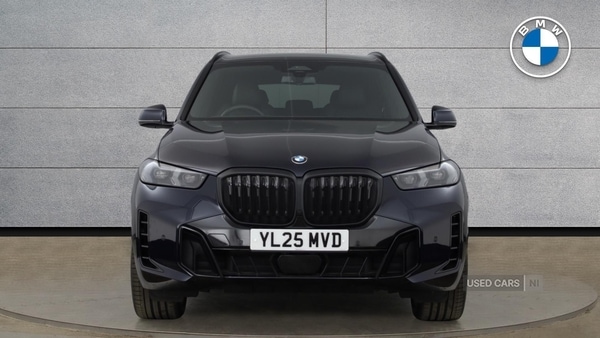 Coleraine0 Previous Owners, This 2025 BMW X5 30d M Sport is a superb example. This impressive vehicle boasts a powerful 3.0L Diesel Hybrid engine paired with a Four Wheel Drive drivetrain, ensuring excellent performance and capability. As a Euro 6 emission class vehicle, it meets modern environmental standards. The M Sport trim enhances its sporty appeal and driving dynamics.Experience effortless convenience with features like the Parking Assistant Pro, which simplifies parking manoeuvres, and Comfort Access for keyless entry. Inside, you'll find Electric Memory Seats, allowing you to easily set your preferred driving position. The X5 offers generous boot space, making it practical for all your needs. Its acceleration is noteworthy, reaching 062mph in just 6.1 seconds, demonstrating its dynamic performance. With a towing weight of 2700 kg, this BMW X5 is a versatile and capable choice. Mild Hybrid Technology, EU6 RDE II exhaust emissions standard, Sport Automatic Transmission with Gearsh, M Adaptive Suspension, Runflat Tyres, Highgloss Shadowline Roof Rails, Alarm System, Comfort Access, Fineline Stripe Brown Interior Trim, Ext. mirrors folding with antidazzle, Ambient Lighting, Luggage Net, Electric Memory Seats, Sport seats, Front Lumbar Support, Heated front seats, HighBeam Assistant, Active Protection, Driving Assistant, Active Guard, Adaptive LED Headlights, BMW TeleServices, BMW Emergency Call, BMW Online Services, Connected Package Pro (limited duration), Storage for wireless charging, Personal eSIM, DAB Radio, M Sport Exterior Styling, Highgloss Shadowline Exterior Trim, Anthracite Headlining, COC additional contents, Active Pedestrian Safety, M Sport Package, M Sport Exhaust System, 21'' 741 M Yspoke Bicolour Alloy Wheels, M Sport Brakes with Blue Calipers, Iconic Glow Kidney Grille, BMW Individual Lights Shadow Line, M Sport Seat Belts, Sun Protection Glass, Parking Assistant Pro, Live Cockpit Pro with Head up Display, Harman/Kardon Surround Sound Audio, Indv. highgloss shadowline extended, M Sport Pro Pack, Technology Pack. Black 5 seats. BMW Approved Used Car