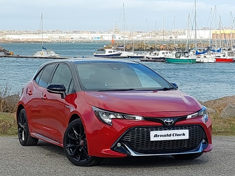 Insurance Group 14, 1 Previous Owner, This is a Click & Collect location. Find your perfect car online and well bring it closer to you. Reserve your favourite for only £99 and arrange collection to this branch. Contact us to learn more. Adaptive cruise control, Android Auto, Apple CarPlay, Cruise control, Head Up Display, LED daytime running lights, LED Headlights, Rear parking sensor, Speed limiter, Steering wheel audio controls, 7" Multi information display screen, Dynamic radar cruise control (with RSA) including switch on steering wheel, EV drive indicator, Head up Display, Intelligent park assist, Reversing camera, Push button start, Bluetooth telephone connectivity, Smartphone integration with Apple CarPlay and Android auto, Gasoline particulate filter, 8" Touchscreen with MM19 Multimedia system and voice recognition, Toyota touch 2 with go navigation system, Auto dimming inside rear view mirror, Automatic headlights with high beam assist, LED multireflector headlights with manual headlight levelling, LED rear combi lights with LED lightguide, Rear privacy glass, Reverse tilting door mirrors, Heated driver and front passenger seats, Leather gear shift with satin chrome on gear shift console, ISOFIX seat fixing (2 fixings on rear outer seats), Alcantara/partial leather upholstery, Toyota safety sense 2 pack Corolla, Parking pack Corolla, Downhill Assist Control (DAC), Supplemental restraint system (SRS) 7 airbags dual driver, dual side curtain, side impact and driver knee airbags, 18" Gloss black alloy wheels, Unique wheel finish with red wheel cap