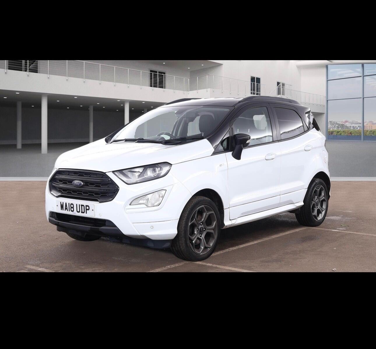 Insurance Group 12, 0 Previous Owners, *** 12 MONTHS MOT*** 1 FORMER KEEPER*** FULL MAIN DEALER HISTORY*** NEW TIMING BELT KIT FITTED*** 2 KEYS*** JUST BEEN SERVICED*** 3 MONTHS PARTS AND LAVOUR NATIONWIDE WARRANTY*** FINANCE AVAILABLE*** NATIONWIDE DELIVERY AVAILABLE***Welcome to Lakeside automotive. This 2018 Ford EcoSport T STLine is a superb example, having been owned by just one careful keeper from new with a clear vehicle history check. This stylish compact SUV boasts a responsive 1.0L petrol engine, meeting Euro 6 emissions standards. Inside, you'll find the convenient Ford DAB Navigation System with Ford SYNC3, offering seamless integration with Android Auto and Apple CarPlay, alongside Bluetooth connectivity. Comfort is assured with Electronic Automatic Temperature Control, and parking is made simple thanks to the rear view camera and rear parking sensors. For an engaging drive, it features Select Shift Sports Mode Technology and paddle shift steering wheel controls.With an impressive fuel economy of 46 mpg, this EcoSport offers excellent value for money, making it a more economical choice compared to similar vehicles. Its low CO2 emissions further contribute to its appeal, indicating a more environmentally conscious performance. This well maintained and feature packed Ford EcoSport STLine presents a compelling option for those seeking a versatile and efficient compact SUV.