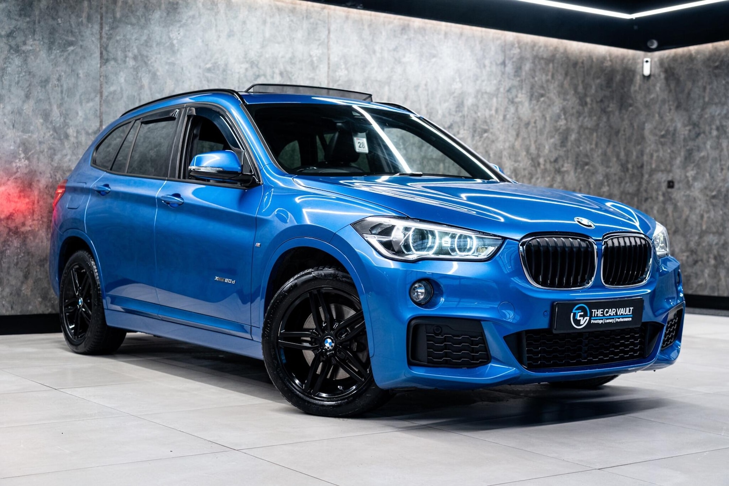 We At The Car Vault Are Proud To Offer This Stunning BMW X1 2.0 20d M SPORT Auto xDrive Euro 6 Finished In ESTORIL BLUE METALLIC Paint. This Vehicle Has a FULL COMPREHENSIVE BMW MAIN DEALER SERVICE HISTORY and Comes With 2 Original BMW Remote Keys.This BMW X1 20d M SPORT xDrive Comes With The Following OPTIONAL SPECIFICATION: GHOST IMMOBILISER System, Panoramic Glass Sunroof, Sport Automatic Transmission, M Sport Suspension, Adaptive LED Headlights with HighBeam Assistant, HeadUp Display (HUD), Reversing Assist Camera, Cruise Control with Brake Function, Comfort Access System, Harman Kardon Loudspeaker Sound System, Technology Package, BMW Navigation Plus Package, Driver Comfort Package, Perforated Dakota LeatherBlack with Grey Stitching with Black Interior, Front Heated Seats, Interior TrimBrushed Aluminium with Pearl Chrome Finisher, Ambient Lighting, Extended Lighting, Bike Rack Preparation, Folding Exterior Mirrors, Powered Tailgate Operation, Sun Protection Glazing, 19in Alloy WheelsLight M Double Spoke Style 572MGloss Black, Panroof.
