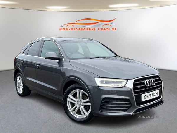 Lisburn1 Previous Owner, JUNE 2015 AUDI Q3 2.0TDI QUATTRO AUTOMATIC S LINE IN STUNNING METALLIC GREY PAINT NI REGISTERED VEHICLE + FANTASTIC VALUE £9,950 2 OWNERS FROM NEW MORE DESIRABLE S LINE MODEL XENON HEADLIGHTS S LINE 1/2 LEATHER SEATS DAB RADIO SATELLITE NAVIGATION REAR PARKING SENSORS LED DAY TIME LIGHTS BLUETOOTH ALLOYS FANTASTIC AUDI DOCUMENTED SERVICE HISTORY(6 IN TOTAL AND WILL COME SERVICED) 101048 WARRANTED MILES ON CAR EXCELLENT CONDITION THROUGHOUT** BUY NOW AND PAY LATER FINANCE AVAILABLE !! WITH 2 MONTHS PAYMENT BREAK VIA MOTONOVO FINANCE **DETAILED WALKAROUND VIDEO OF THIS VEHICLE ON OUR FACEBOOK PAGE KNIGHTSBRIDGECARSNI** PLATINUM 3 MONTHS PARTS AND LABOUR WARRANTY WITH OPTION TO EXTEND UP TO 15 MONTHS AND LOW RATE FINANCE AVAILABLE CONTACT US FOR A QUOTE ON 07855377856 **