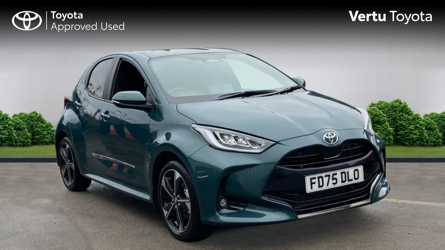LeicesterInsurance Group 16, 0 Previous Owners, 0, Franchise Approved, If youre after a car thats small, clever, and effortlessly stylish, this forest green 75 plate city car is ready to impressand maybe make the neighbours a little jealous.Available from Vertu Toyota, this demonstrator has had a gentle life, meaning its practically new but with the added bonus of being ready to go. Sleek, compact, and full of personality, its perfect for zipping through city streets, squeezing into tight parking spots, or casually showing off your good taste without trying too hard.Under the bonnet, the 1.5 selfcharging hybrid system quietly gets on with the hard work. No cables, no plugging in, no how does this actually work? momentsit just charges itself as you drive. Smooth, efficient, and just a little smug about saving fuel, it turns commuting, school runs, and weekend adventures into a stressfree pleasure.Inside, the black leather really steals the show. Not only does it look sophisticated, but it also makes every journey feel that little bit more luxurious. Add in all the clever features you expect, and this car makes everyday driving feel more like a treat than a chore.It comes with a full Toyota service history, so you know its been properly looked after. Being Toyota Approved, its passed a thorough inspection, giving you peace of mind every time you get behind the wheel.And for longterm reassurance, you can benefit from a Service Activated Warranty running all the way through to December 2035. Thats years of worryfree motoring while you focus on enjoying the drive.In short: stylish, efficient, and packed with clever tech. Practical enough for everyday life, fun enough to make every journey enjoyable, and sleek enough to make a forest green hatchback look like a statement piece. Small, smart, and very, very tempting..Air Conditioning, Climate Control, Metallic Paint, Cruise Control, Satellite Navigation, Alloy Wheels, Leather Seats, DAB Radio, Bluetooth, Parking Sensors, Full Service History, USB, Manufacturer Approved, Diamond Cut Alloy Wheels, Adaptive cruise, AppleAndroid Play, Rear Camera, Auto Lights, Lane Departure, Lane Keeping Assist, Pre Crash Prevention& Rain Sensors, Front and rear floor mats, Border/stitching and Yaris logo on floor mats, Variable front intermittent wipers, Rear privacy glass, Auto windscreen wipers, Front auto power windows with anti jam protection, Rear auto power windows with anti jam protection, Noise reduction layer on windscreen, Rear intermittent wipers, Rear window defogger with timer, Electronic parking brake, Hill start assist control (HAC), Ventilated front disc brakes, ABS/EBD, Emergency brake light signal (EBS), Solid rear disc brakes, Vehicle Stability Control (VSC), Default front suspension, Ecall, Bluetooth connectivity, Quote Ref: 53760301