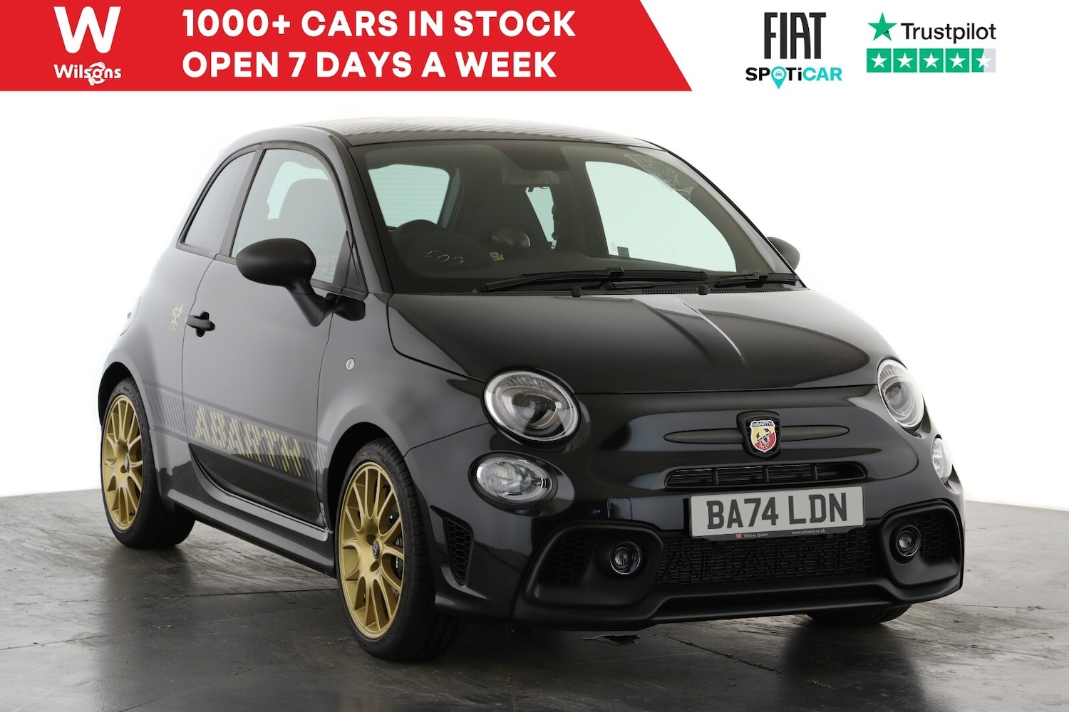 ..7'' TFT instrument display with sports mode, eCall emergency call system, Garrett turbo, Power assist steering, Rain and dusk sensors, Rear parking sensors, Sports button, Trip computer, Koni front and rear suspension with Frequency Selective Damping technology, Torque transfer control (TTC), Beats hifi audio system, Uconnect radio 7'' touchscreen DAB with Nav 6 speakers, bluetooth with audio streaming, Apple carplay and Android auto, 3rd brake light, 75th Abarth piston head sticker, Active record monza exhaust with rotated tips, Black front and rear bumper inserts, Body coloured bumpers, Dark tinted rear quarter windows, Electric adjustable heated door mirrors, Electric front windows, Front fog lights, Gold Abarth lateral stickers, Gold scorpion sticker on roof, Hidden antenna, LED daytime running lights, Metallic paint, Poly elliptical halogen headlights, Privacy glass, Rear wiper, Window integrated aerial with aluminium roof cap, 12V socket, 2 seat bench in 2nd row, Alcantara/carbon fibre steering wheel, Aluminium gearknob, Automatic zone climate control, Black alcantara dashboard, Driver/front passenger seat height adjustment, English handbook, Fabric Sabelt carbon seats upholstery with 75th Anniversary logo, Floor mats, Front head restraints, Front passenger seat memory, Glovebox, Height adjustable steering wheel, High performance BMC air filter, Rear headrests, Single front passenger seat, Stainless steel pedal covers, ABS, Black brembo brake calipers, Driver and passenger airbags, Drivers knee airbag, ESP + ASR/MSR + HBA + Hill holder, Floating brake dics, Front side airbags, Head protection side airbag, Tyre pressure monitoring system, Window airbags, Alarm, Immobiliser, Power door locks, Remote central locking, 17'' Gold alloy wheels with black hubcap, Fix and go kit