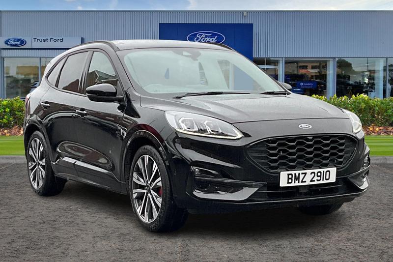 Insurance Group 20, 12.3 digital colour instrument cluster, Ford easy fuel, Ford SYNC 3 with 8 TFT LCD touchscreen, App Link, andriod auto/apple carPlay, emergency assistance and navigation with Ford pass connect, Front and rear parking sensors, Hands free power tailgate, Lane keeping aid with lane departure warning, Power assist steering, Rear view camera, Selectable drive modes, Service interval indicator, Auto headlamps with high and low beam, Black roof rails, Body colour bumpers, Day/night rear view mirror, Front LED fog lamps, Large rear roof spoiler, LED daytime running lights, LED rear lights, Power folding, electrically adjustable and heated door mirrors with puddle lights, Power front/rear windows with global close, Power opening panoramic roof, Quickclear heated windscreen, Rain sensing wipers, Rear privacy glass, Rear side wing doors, Rear wiper, ST Line body styling kit with unique front and rear fascia and bumper, rear painted diffuser, front painted skid plates, dark mesh upper grille, ST Line front scuff plates, Third brake light, Twin exhausts, 2nd row sliding seats with 60:40 split, Alloy pedals, Centre console with electronic parking brake, Dark headlining and pillars, Electronic automatic temperature control (EATC), Flat bottomed leather steering wheel in sensico with red stitching, Front and rear head restraints, Heated passenger and driver seats, Heated rear seats, Heated steering wheel, Partial premium touch Sensico with black cloth inserts and red stitching, Rear