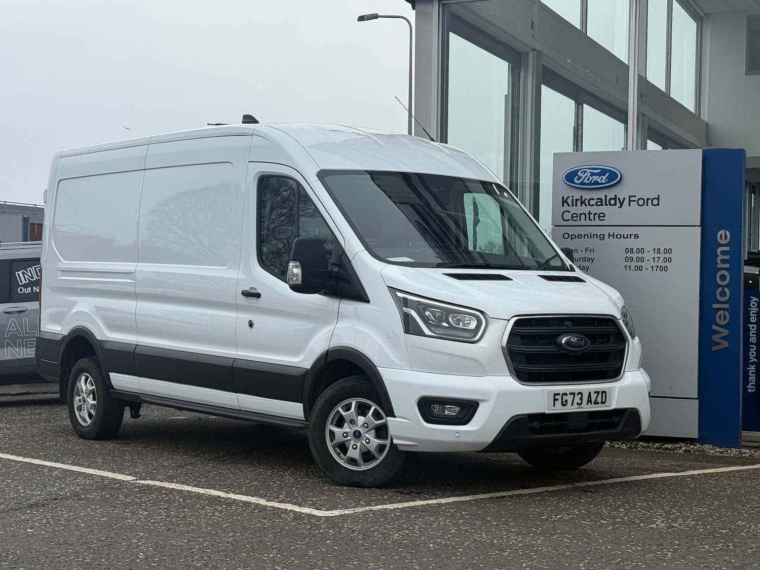 0 Previous Owners, Seatbelt reminder on front seats and fixed rear seats, Curvature Control, Easy fuel capless refuelling system, Emergency brake warning, Instrument panel differentiation, PAS, Selectable drive mode, Speed limiter, leather steering wheel and trip computer, Vehicle maintenance monitor, Warning lights, 180 degree opening rear doors, Body coloured front bumper, Chrome Grille, Digital rear view mirror, Heated windscreen, High intensity discharge headlamp with static cornering lights, High mounted stop lamp, Kerbside side load doors, LED Daytime running lights, LED down lighter, Medium roof line, Power foldable and heated door mirrors, Power windows, Rear bumper with integral step, Rear mudflaps, Rear splash guards, Solid paint, Wide bodyside mouldings, Driver's armrest, Dual passenger seat tray and table, Easy clean load floor, Full steel bulkhead, Glovebox with A4 file storage, Leather wrapped gear knob with aluminium surround, Less easy clean load floor, Load Compartment Light LED Airline Rail, Lockable glove box, Overhead console, Radio with remote stalks, Reach and rake adjustable steering column, Semiautomatic air conditioning, Storage box under dual passenger seat, Advanced Pack 1 Camera Transit, Seat pack 13 Transit, 2nd remote key, Keyless start, Locking wheel lug nut, Remote central dead locking, 2 x 12V power outlets, ABS + ESP + Hill start assist, Electronic dynamic cornering control, Extra heavy duty alternator, Mechanical parking brake, Side wind mitigation, Standard duty battery (single 80Ah H7 AGM battery), 12 inch touch screen with new SYNC 4 system, DAB/AM/FM radio with 2 x USB, bluetooth, emergency assistance, Apple Carplay/Android Auto, Audio controls mounted on steering wheel, 16 inch alloy wheels, Ful wheel covers, Single rear wheels, Tyre repair kit, Price Plus VAT