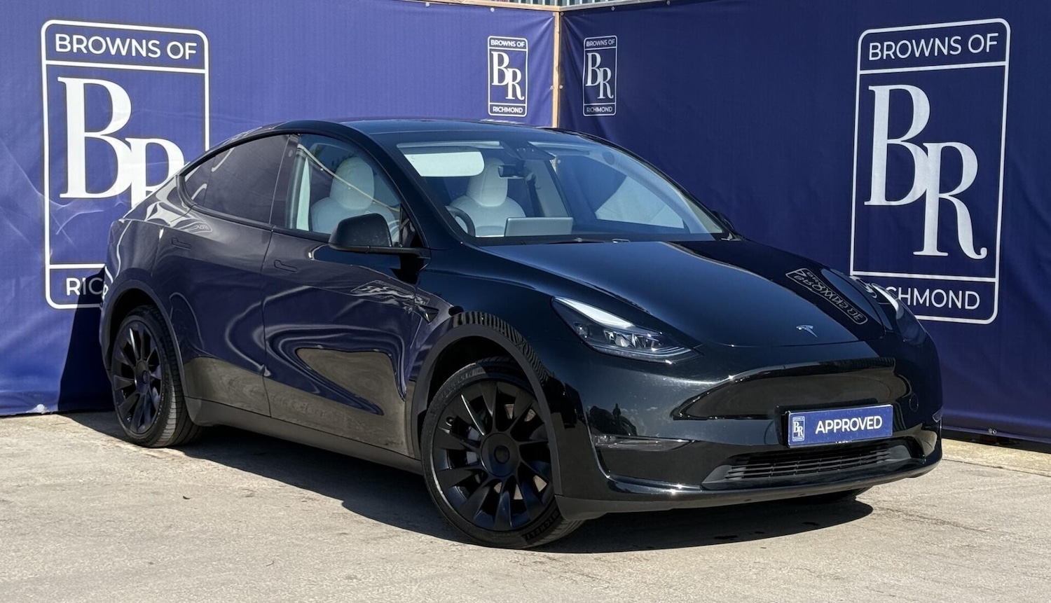 Richmond0 Previous Owners, Browns of Richmond proudly presents the Tesla Model Y Long Range AWD one of the most soughtafter electric cars for sale in the UK and an exceptional choice for anyone ready to embrace the future of driving. This LongRange model features a 75kWh battery and dual motors, delivering outstanding performance with a 060mph time of just over 4.5 seconds. Finished in Black and complemented by factoryfitted 20inch Induction Alloy wheels in original Satin Black, it looks stunning. Inside, enjoy the white premium vegan leather upgrade, heated seats for all passengers and multiple customisable settings. With a realworld range of 250280 miles and charging costs as low as £5.25 on the right tariff, running costs average around 2p per mile unbeatable for this level of technology and refinement. Built for efficiency and practicality, the Model Y combines everyday usability with cuttingedge innovation. Tesla's intuitive interface and app connectivity make charging and navigation effortless: simply enter your destination and the car calculates routes, charging stops, and arrival battery levels automatically. This vehicle benefits from Tesla's industryleading 4year 50,000mile Vehicle and 8year/120,000mile battery and drivetrain warranty for complete peace of mind. It has also passed our rigorous 114point inspection, ensuring it meets the highest standards before reaching its next owner. At Browns of Richmond, we're more than a dealership we're EV specialists. Our team has been driving and living with electric vehicles for over a decade, giving us realworld experience that few can match. Whether it's charging advice, range tips, or helping you choose the right electric car for your lifestyle, we're here to guide you every step of the way. Contact us today to arrange a Tesla Model Y test drive or learn more we'll make your transition to electric effortless and enjoyable. The advertised price is plus a £199 fee for the Browns Signature Care Package. Full details: https://www.brownsofrichmond.co.uk/brownssignaturecare.