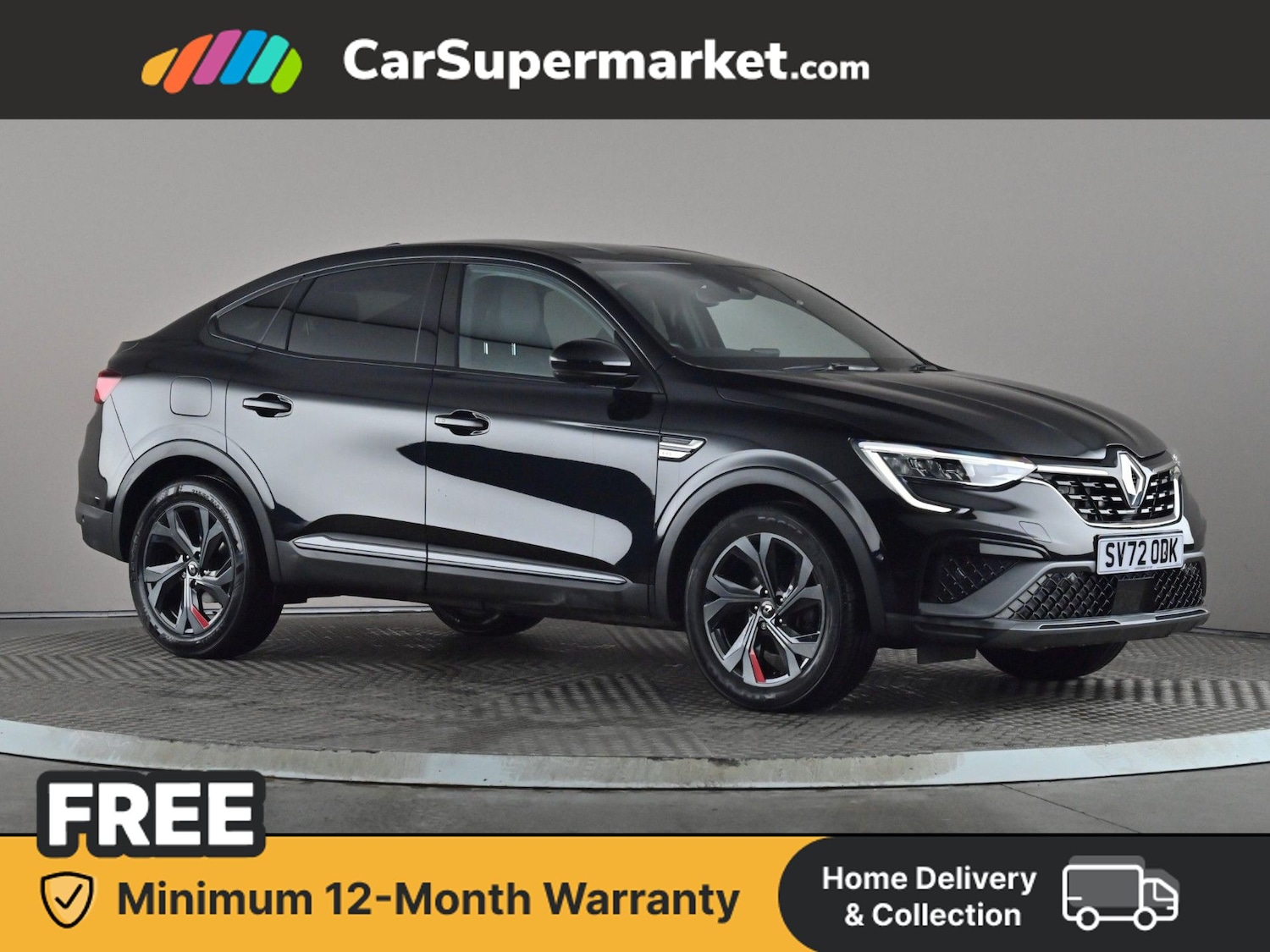 Insurance Group 15, 0 Previous Owners, This black Renault Arkana R.S. Line combines sporty styling with efficient hybrid technology from the 1.6 ETECH hybrid powertrain. The vehicle includes blind spot monitoring, Bluetooth connectivity and satellite navigation along with parking sensors and lane departure warning for added driver assistance. Apple CarPlay and Android Auto provide smartphone integration while traffic sign recognition and automatic climate control enhance the driving experience. Optional extras include black exterior paint and R.S. Line suede leather interior trim in black with red and grey stitching. These options bring the total options cost to £650.00.