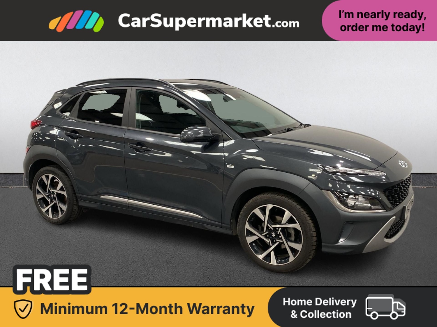 Insurance Group 11, 0 Previous Owners, Finished in Dark Knight grey, this Hyundai Kona Premium offers stylish crossover design with mild hybrid efficiency and a strong level of equipment. Highlights include satellite navigation, Bluetooth connectivity, cruise control, Apple CarPlay, Android Auto, privacy glass, heated front seats, heated steering wheel and keyless entry. The vehicle also benefits from optional Dark Knight paint, with options totalling £565. It also comes with a minimum 12month warranty.