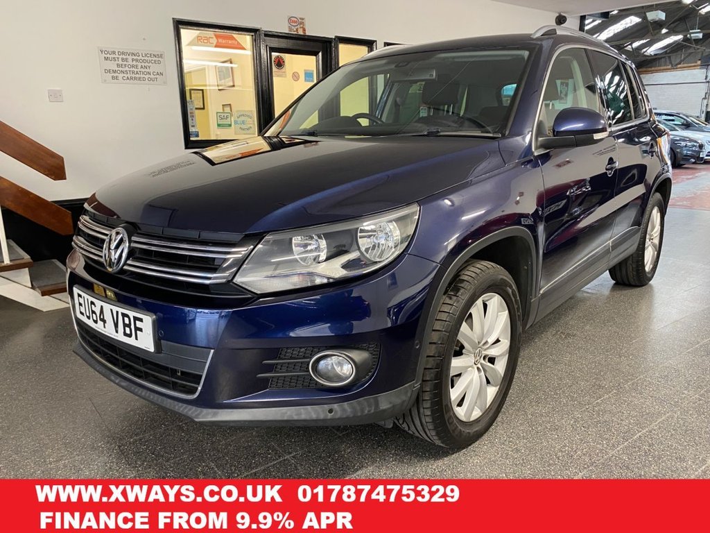 Insurance Group 19, 2 Previous Owners, Only 64700 miles with complete Full VW + Independent Service History. This Tiguan Tech Match (4WD) TDi SUV is finished in Night Blue Metallic with part suede/cloth grey trim. It is fitted with Space saver spare power steering, Tech Pack Including Satellite Navigation, remote locking, electric windows and power mirrors with dual climate, air conditioning, ACC cruise control, Self Park front and rear parking sensors, Hill Assist, Bluetooth, 17" Alloy wheels, space saver spare wheel, 2 keys, Auto lights, DAB Stereo with Aux & USB port and more. It is complete with an excellent service history, with VW and Independent garages , with visits at 5402/9379/13172/18694/24411/29431 (Cambelt), 34171 (Haldex oil change)/40593/47223/53381/60703 (air con gas) miles. Including receipts. The existing MOT is November, We will supply it with a service and a New MOT if required. We include 6 months RAC warranty and 12 months breakdown cover included, Finance is available from 9.9% APR and extended warranties are available, which can be paid for monthly. Finished in a beautiful colour with an outstanding ownership and history, this Tiguan is superb throughout with its high seating position, SUV practicality, big specification & has not been smoked in or carried pets. WHATSAPP Available 07967962192. For more information please visit www.xways.co.uk or phone 01787 475329/07967962192, HIGH STREET LOCATION CARS UNDERCOVER IN SHOWROOM, p/x considered.12V Socket Centre Console, 12V Socket Luggage Compartment, 17in Alloy Wheels New Orleans, 2 Zone Electronic Climate Control with Automatic Air Recirculation, ABS AntiLock Braking System, Air Vent Surrounds Steel Finish, Airbags Curtain, Airbags Driver, Airbags Front Passenger, Airbags Front Passenger with Deactivation Switch, Airbags Front Seat Side Impact, Alarm with Interior Protection, AntiTheft Wheel Bolts, Armrest Front Centre with Storage Compartment, ASR Anti Slip Regulation, Automatic Dimming Rear View Mirror, AuxIn Socket, Bluetooth Telephone Preparation, Body Coloured Bumpers, Body Coloured Door Handles, BodyColoured Door Mirrors with Integrated Indicators, Central Locking Remote with 2 Remote Keys, Chrome Trimmed Front Air Intake Grille Surround, Colour Screen 5in, Cruise Control, Cup Holders Front x2 Rear x1, Cup Holders Rear x2, Dashmounted MP3 Compatible CD Player, Dashboard and Centre Console Anthracite Metallic, Differential Lock Electronic, Door Mirrors Electrically Adjustable and Heated, Driver Alert System, EBD Electronic Brake Pressure Distribution, Electric Windows Front and Rear, Electronic Engine Immobiliser, Electronic Parking Brake with Auto Hold Function, ESP Electronic Stability Programme, Flat Tyre Indicator, Folding Front Seat Backrest, Folding Table on Back of Front Seats, Footwell Illumination Front, Front Fog Lights with Cornering Lights, Front Seat Back Storage Pockets, Front Sports Seats, Glovebox Cooled and Lockable, Head Restraints Front Whiplash Optimised, Headlights ComingLeaving Home Function, Headlights Dusk Sensor Automatic Driving Lights, Headlights Halogen Clear Range Adjustable, Heated Rear Window, Height and Reach Adjustable Steering Column, High Level 3rd Brake Light, Instrument Lighting White Adjustable Panel Illumination, Interior Light Delay, Interior Lighting Delay, ISOFIX Child Seat Preparation for 2 Rear Seats, Lights on Warning Buzzer, LoadThrough Provision, Luggage Compartment Cover Removable, Luggage Compartment Light, Luggage Compatrment Load Lashing Points x5, MDI Multi Device Interface with USB iPod Connection Cables, Multifunction Computer, Night Blue, Park Assist including Parking Sensors Front and Rear, Parking Sensors Front, Parking Sensors Rear, Power Assisted Steering Speed Sensitive, Radiator Grille Black with Chrome Louvres, Rain Sensor, Reading Lights Front x2, Rear Wash Wipe with Intermittent Wipe, Rigid