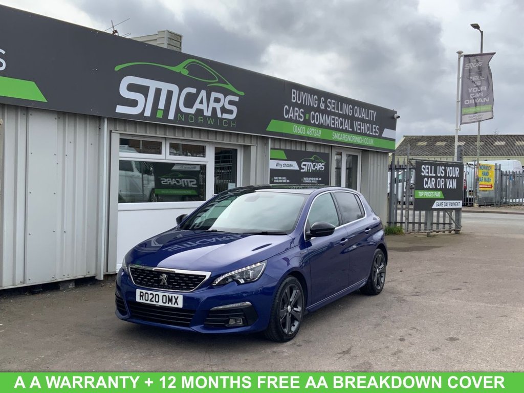 Norwich2 Previous Owners, This 2020 Peugeot 308 BlueHDi GT Line offers an exceptional blend of style and efficiency, boasting an impressive fuel economy of 63 miles per gallon. This Euro 6 compliant model features a responsive 1.5 litre diesel engine, ensuring a smooth and economical drive. The GT Line trim level enhances the vehicles appeal with a suite of advanced features, including Full LED Headlights and the Visibility Pack for optimal illumination. For added convenience, it comes equipped with Automatic Dual Zone Climate Control and a Bluetooth Telephone Facility, keeping you comfortable and connected on every journey. Maneuvering and parking are made effortless thanks to the Visio Park 1 system, which includes a 180 degree colour reversing camera and parking assistance. The Peugeot 308 also provides generous storage with its large boot space, making it a practical choice for families and everyday use. Demonstrating its capable performance, this model achieves 0 to 60 miles per hour in just 9.8 seconds, offering a satisfying driving experience that stands out from other vehicles in its class. AT SM CARS NORWICH, WE HAVE OVER 100 QUALITY USED VEHICLES AVAILABLE ON OUR WEBSITE AT SMCARSNORWICH.CO.UK. WE ARE AN AA APPROVED DEALER, GIVING YOU THE CONFIDENCE THAT EVERY VEHICLE MEETS TRUSTED STANDARDS. ALL OF OUR CARS ARE THOROUGHLY INSPECTED, FULLY HPI AND EXPERIAN CLEAR, AND CAREFULLY HANDPICKED TO ENSURE THE BEST QUALITY AND VALUE. WE SPECIALISE IN SUPPLYING QUALITY EXFLEET, ONEOWNER VEHICLES THAT ARE WELL MAINTAINED, COMPETITIVELY PRICED, AND READY FOR WORK. EVERY VAN IS CAREFULLY PREPARED BEFORE SALE, GIVING YOU COMPLETE PEACE OF MIND THAT YOU?RE DRIVING AWAY IN A VEHICLE YOU CAN RELY ON. AS A FAMILYRUN BUSINESS ESTABLISHED IN 2014, WE TAKE PRIDE IN OFFERING HONEST SERVICE, COMPETITIVE PRICES, AND A STRESSFREE BUYING EXPERIENCE. WHETHER YOU ARE LOOKING FOR A SMALL CITY CAR, A FAMILY SUV, OR A RELIABLE COMMERCIAL VEHICLE, SM CARS NORWICH IS HERE TO HELP YOU FIND THE RIGHT CHOICE..13 23 Folding Rear Seat, 12V Power Socket, 17in Alloy Wheels Rubis Diamond Cut, 3D Connected Navigation, 6Speaker Radio MP3 Compatible, Airbags Adaptive Driver and Front Passenger, Airbags Driver and Front Passenger Side, Airbags Front and Rear Curtain, Alarm Thatcham Category 1, Aluminium Door Sill Finishers, Aluminium Style Pedals and Door Sills, AntiLock Braking ABS Electronic Brake Force Distribution EBFD Emergency Braking Assistance EBA, Automatic Door Locking When Moving Off, Automatic Dual Zone Climate Control, Automatic Hazard Light Activation Upon Heavy Brake Application, Bluetooth Telephone Facility, Central Front Armrest with Height and Longitudinal Adjustment, Child Locking Functionality on Rear Doors, Cielo Panoramic Glass Roof with Electric Blind, DAB Digital Radio, Dark Tinted Rear Side and Tailgate Windows, Dashboard Trim Satin Chrome, Deadlocking, Door Armrests and Facia Panels Trimmed in Mistral Leather Effect Trim with Red Stitch Detail, Door Mirror Shells Nera Black, ESP Electronic Stability Programme, Electric Parking Brake includes Hill Assist, Electric Power Steering with Reach and Rake Adjustable Steering Column, Electronic Code Immobiliser, Exterior Door Handles BodyColour, Exterior Temperature Indicator with Ice Warning, Fixing Rings x4 in Load Area, Front Armrest and Gear Lever Gaiter with Red Contrast Stitching, Front Central Console with CupHolder, Front Interior Light with Reading Spotlights x2 and Rear Interior Light with Timer, Front Optimised Safety Headrests and Rear Retractable Headrests x3 HeightAdjustable, Front ThreePoint Retractable Seatbelts with Force Limiters, Front Windscreen Wipers with MultiSpeed Setting, Front and Rear Parking Sensors, Fuel Filler Cap with Dedicated AdBlue Inlet, Full LED Headlights, GT Line Emblems Front Wings and Tailgate, Gear Lever in Satin Chrome, Gear Shift Indicator, Grab Handles x4 Retractable Damped, Headlights Left On Audible Warning, Heated Rear Windscreen, ISOFIX Child Seat Fittings x2 in the Outer Rear Seats, Illuminated Vanity Mirrors, Interior Door Handles Satin Chrome, LED Daytime Running Lights Built into the Headlight Unit, LED Fog Lights, LED Sequential Scrolling Front Indicators, Map Pockets on Front Seat Backs, Mirror Screen, Mistral Floor Mats with Red Contrast Stitching, Mistral FullGrain Leather Steering Wheel with Red Stitch Detail, Multifunction Trip Computer, OneTouch Electric Front and Rear Windows with Pinch