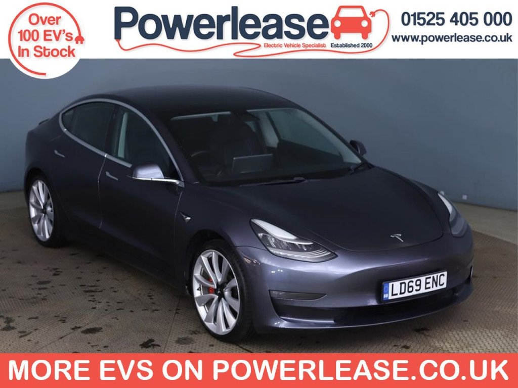 1 Previous Owner, Experience exhilarating electric performance with this 2019 Tesla Model 3 Performance. This all electric, four wheel drive saloon boasts an impressive 82 kWh battery, offering a maximum range of 329 miles when new. Charging is convenient, with a full charge at home taking approximately 12 hours using a 7kW charger, and rapid charging to 80% achievable in just 26 minutes at a public station. Inside, youll find comfort and convenience with 12 way power adjustable front and rear heated seats, and advanced safety features including a park assist camera, blind spot information, and rear parking sensors. The Model 3 Performance truly stands out with its remarkable acceleration, achieving 0 to 60 miles per hour in a mere 3.2 seconds. This rapid acceleration demonstrates its superior performance capabilities compared to many other vehicles in its class. The inclusion of air conditioning ensures a comfortable cabin environment in all conditions, making every journey a pleasure. This Tesla Model 3 Performance combines cutting edge electric technology with a dynamic driving experience. BATTERY HEALTH CHECK AVAILABLE ON REQUEST SPECIALIST EV EXTENDED WARRANTIES ALL VEHICLES FULLY INSPECTED ALL VEHICLES SERVICED & MOTED HPI CHECKED AND CERTIFIED FINANCE AVAILABLE PART EXCHANGE AVAILABLE CLICK AND COLLECT AVAILABLE HOME DELIVERY AVAILABLE BUY ONLINE VIA OUR WEBSITE WWW.POWERLEASE.CO.UK IN BUSINESS FOR OVER 20 YEARS EST 2000 .12Way Power Adjustable Front and Rear Heated Seats, 15in Touchscreen with Onboard Maps and Navigation, 2 Zone Climate Control, 20in Alloy Wheels Performance, 3x3 Point Rear Seat Belts, 6040 Split Folding Rear Seats, ABS Antilock Braking System, Adaptive Cruise Control, Adaptive Steering, Air Conditioning, Airbags 6, Airbags Curtain, Airbags Driver, Airbags Passenger, Airbags Side, Aluminium Alloy Pedals, Ambient Interior Lighting, Audio Remote Control, Auto Dimming Power Folding Heated Side Mirrors, Automated HighBeam Assist, Automatic Emergency Braking, Autopilot Function, Blind Spot Information, Bluetooth Connection, Body Coloured Bumpers, Carbon Fibre Spoiler, Centre Console with Storage 4 USB Ports and Docking for 2 Smartphones, Collision Avoidance, Custom Driver Profiles, Daytime Running Lights LED, Digital Radio, DVD, Electric Hinged Side Doors Front, Electric Hinged Side Doors Rear, Electrically Adjustable Drivers Seat, Electrically Adjustable Passenger Seat, Electrically Adjustable Steering Column TiltTelescopic, Electronic Stability Control and Traction Control, Fixed Panoramic Glass Roof, Front Armrest, Front Cross Traffic Camera, Front Electric Windows, Front Fog Lights, Front Head Restraints, Front Parking Sensor, Front Trunk and Interior Floor Mats, Height Adjustable Drivers Seat, InCar Internet Streaming Music and Media, Interior Carpeting, Internet Browser, Internet Connection, Isofix Child Seat Anchor Points, Keyless Entry and Remote Control with App, Keyless Go, Lane Departure Warning, LED Foglights, LED Headlights, LocationAware Automatic Garage Door Opener, Map and Reading Lights, Media Storage, Midnight Silver, Mobile Phone App Interface, Navigation System, NonSafetyCritical Software Updates over Cellular, OEM Sound System, Park Assist Camera, Performance Brake Calipers, Power Steering Speed Sensitive, Premium Audio 14 Speakers 1 Subwoofer 2 Amps and Immersive Sound, Premium Engineered Material Black, Radio AMFM Internet Streaming, Rear Cross Traffic Camera, Rear Electric Windows, Rear Headrests, Rear Parking Sensor, Remote Central Locking, Reverse Parking Aid, SatelliteView Maps with Live Traffic Visualisation and Navigation, Seats Heated Front, Service Indicator, Software Updates over WIFI, SteerByWire Technology, Steering Wheel Mounted Controls, Telephone, Tinted Glass Roof with Ultraviolet and Infrared Protection, Track Mode, Traction Control, Traffic Sign Recognition, Trip