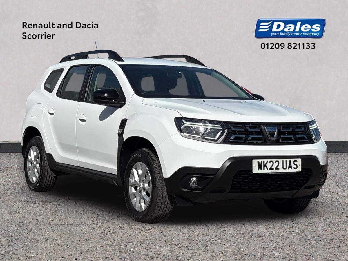 RedruthInsurance Group 14, 1 Previous Owner, The 2022 Dacia Duster TCe 150 Comfort 5Dr EDC Estate in solid Glacier white is a rugged and reliable SUV with a sleek design. With only 30000 miles on the clock, this Duster is equipped with a host of features to enhance your driving experience. The 16" alloy wheels complement the bodycoloured door handles and black side sills, giving it a stylish look. Inside, the cabin is both practical and comfortable, with features like a spacious 3 seat bench in the 2nd row, 8" media display with smartphone replication, and fabric upholstery. The Dacia instrument cluster and Dacia plug provide essential information and entertainment options. Safety is a priority with ABS, Emergency brake assist, ASR traction control, and multiple airbags. The vehicle also includes modern conveniences like cruise control, rain sensor, rear parking sensors, and reverse camera for added peace of mind. The Dacia Duster TCe 150 Comfort is a versatile SUV ready for any adventure, whether in the city or offroad.