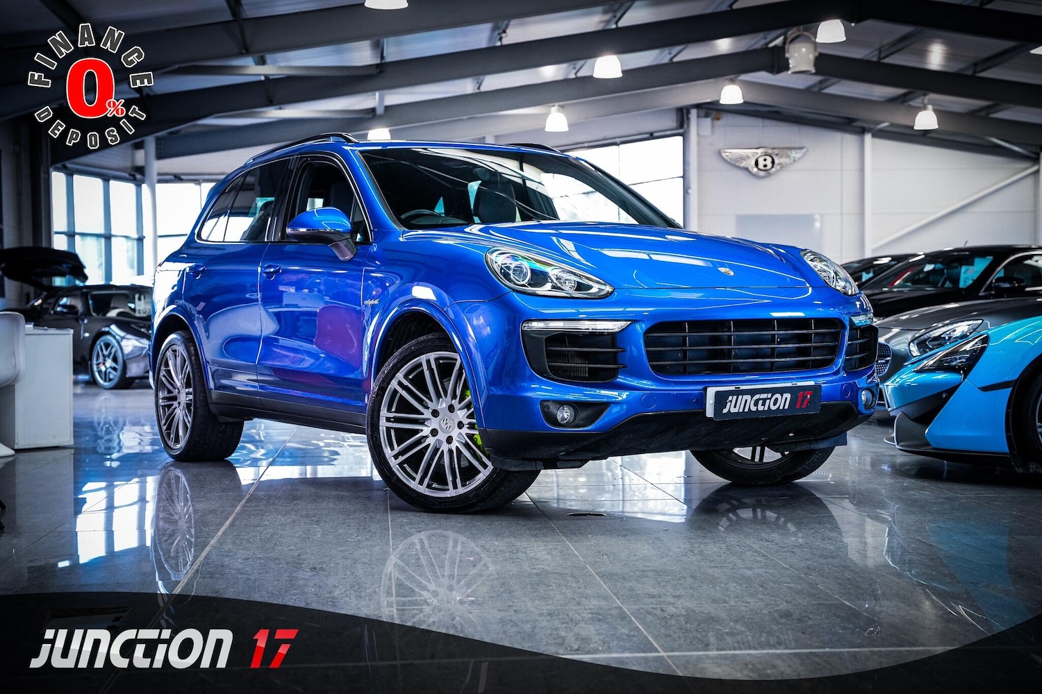 Insurance Group 49, *CLICK BUY COLLECT* FINANCE AVAILABLE! HPI CLEAR! Junction 17 Cars now have to offer a stunning Porsche Cayenne 3.0 V6 EHybrid S TiptronicS 4WD Euro 6 (s/s) 5dr.. Porsche Main Dealer Service History.. Finished in Cobalt Blue and complemented by Black Leather Upholstery.. Fantastic Specification.. Upgraded 21'' 911 Turbo Alloys.. Panoramic Roof System.. Porsche Active Suspension Management.. Reverse Camera.. Privacy Glass.. Heated Seats.. and more.*ANY THIRD PARTY VEHICLE INSPECTIONS ARE WELCOME* *WE WILL BEAT ANY CAR VALUATION SITE FOR YOUR PART EXCHANGE* Junction 17 Cars (Runner Up at the Motor Trader Independent Dealer Awards 2019 nominated for Car Supermarket of the Year Award) is a unique family run business with over £7 millions worth of stock currently split over our purposebuilt showroom in Yaxley, Peterborough and our new showrooms in Grantham and Rugby. Our vehicles can also be reserved with a £99 refundable holding deposit to ensure that they are professionally prepared/valeted for your viewing pleasure. Competitive HP and PCP packages are available with decision/approval available within 15 minutes. We also offer comprehensive warranties over a variety of different terms as well as Williams Ceramic Coating, Flexfuel Engine Carbon Cleaning and more. **NATIONWIDE DELIVERY AVAILABLE** Payment : maximum £500 card payment balance by bank transfer