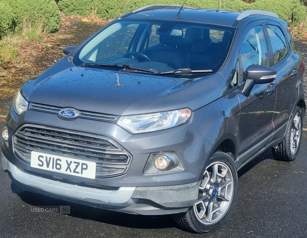 Insurance Group 10, This 2016 Ford EcoSport Titanium Auto in sleek grey offers a versatile driving experience ideal for navigating city commutes and weekend getaways. With its 1.5L petrol engine and smooth automatic transmission, this SUV delivers a balanced mix of power and efficiency, making it equally at home on motorways or winding Broads. The 110 BHP powertrain ensures a responsive drive, while achieving a fuel consumption of 44.8 MPG, making it a practical choice for daily use.Inside, the EcoSport boasts a wellappointed cabin designed for comfort and convenience. Features like air conditioning, adjustable steering column, and allround electric windows enhance the driving experience, ensuring a pleasant journey for both driver and passengers. With ample seating for five and a spacious boot, this Ford EcoSport is ready to accommodate your family adventures or workday demands. Backed by a comprehensive service history and a mechanical warranty, this SUV is a reliable choice for those seeking a capable and stylish urban companion.WE GIVE BEST TRADE IN ALLOWANCE ON ANY YEAR OR MAKE!SEE ALL OUR BEST VALUE CARS AT www. kdkars .com